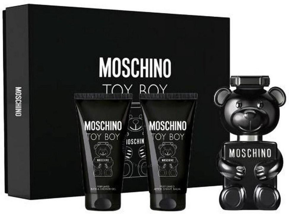 Cechy produktu: Marka: Moschino Dla kogo: dla niego Przepiękny zestaw Moschino Toy Boy super pomysł na prezent! Zawartość zestawu: - woda perfumowana 50 ml - żel pod prysznic 50 ml - balsam po goleniu 50 ml Całość w pudełku o wymiarach: 25 x 22 x 9 cm Drzewny, aromatyczny zapach dla mężczyzn …