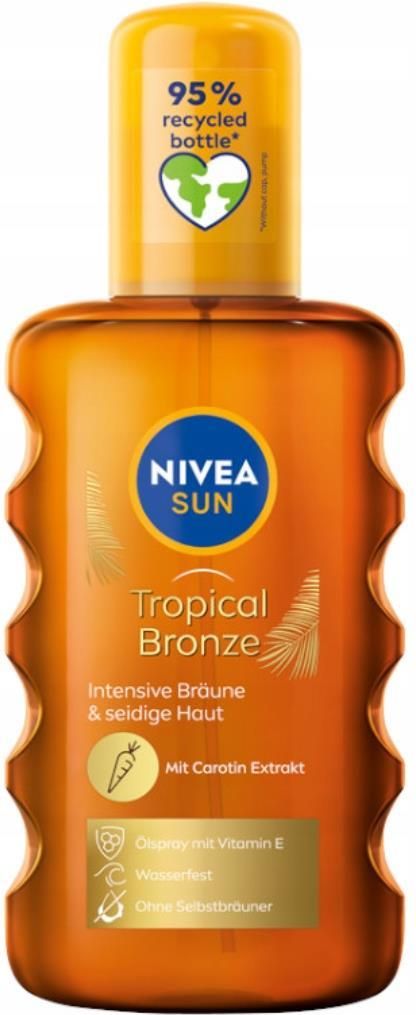 Nivea Intense Bronze Karotenowy Olejek Do Opalania W 'U Spf6 200ml Nivea Intense Bronze Karotenowy Olejek Do Opalania W 'U Spf6 200ml to idealny produkt dla osób, które pragną cieszyć się słońcem, jednocześnie dbając o odpowiednią ochronę swojej skóry. Dzięki formule w sprayu, aplikacja jest szybka i wygodna, co sprawia, że olejek ten jest doskonałym wyborem na letnie dni. Jego unikalne właściwości pozwalają uzyskać piękną, złotą opaleniznę, a jednocześnie chronić skórę przed szkodliwym działaniem promieni UV. Rodzaj produktu i przeznaczenie W kategorii kosmetyków do opalania wyróżniamy różne formy, takie jak olejki, spraye oraz balsamy. Karotenowy olejek do opalania w sprayu SPF 6 od Nivea to doskonały wybór dla osób pragnących uzyskać piękną opaleniznę, jednocześnie chroniąc skórę przed szkodliwym działaniem promieni UV. Dzięki formule w sprayu, aplikacja staje się szybka i wygodna, co jest szczególnie istotne w gorące dni. Produkt ten jest odpowiedni dla różnych typów skóry, w tym dla osób z cerą normalną oraz wrażliwą. Ochrona i skład Olejek Nivea Intense Bronze zapewnia ochronę przed promieniowaniem UV w postaci filtra SPF 6, co oznacza umiarkowane opalanie, chroniąc jednocześnie skórę przed oparzeniami słonecznymi. Formuła wzbogacona jest o karoten, wspierający naturalny proces opalania, nadając skórze piękny, złocisty odcień. Co więcej, olejek jest wodoodporny, co oznacza, że można cieszyć się słońcem oraz wodnymi przyjemnościami, nie martwiąc się o to, że produkt zmyje się z powierzchni skóry. Dodatkowo, formuła nie zawiera parabenów, co czyni ją bardziej przyjazną dla skóry oraz środowiska. Pojemność i konsystencja Oferowany produkt ma pojemność 200 ml, co czyni go idealnym do zabrania na wakacje czy weekendowy wypad. Jego lekka konsystencja łatwo rozprowadza się na skórze, a dzięki formie sprayu aplikacja staje się niezwykle prosta – wystarczy kilka psiknięć, by pokryć skórę równomiernie. Zapach i sposób aplikacji Zapach karotenowego olejku to delikatna kompozycja, która kojarzy się z wakacjami i słońcem, wprowadzając w błogi nastrój podczas aplikacji. Produkt łatwo się rozprowadza i szybko wchłania, nie pozostawiając na skórze tłustej powłoki. Dzięki temu można go stosować zarówno na plaży, jak i na co dzień, mając pewność, że skóra jest odpowiednio chroniona i nawilżona. Dodatkowe właściwości Karotenowy olejek do opalania od Nivea to nie tylko ochrona przed promieniowaniem UV, ale także szereg dodatkowych zalet, które warto podkreślić: Ochrona przed promieniowaniem UVB i UVA: Dzięki filtrom SPF 6, skóra jest zabezpieczona przed szkodliwym działaniem słońca. Wodoodporna formuła: Olejek utrzymuje skuteczność ochrony nawet podczas kontaktu z wodą. Naturalny karoten: Wspiera proces opalania i nadaje skórze piękny, złocisty odcień. Brak parabenów: Produkt jest przyjazny dla wrażliwej skóry oraz środowiska. Łatwa aplikacja: Spray w formie olejku sprawia, że aplikacja jest szybka i wygodna. Delikatny zapach: Przyjemna kompozycja zapachowa umila korzystanie z produktu. Karotenowy olejek do opalania to idealny wybór dla osób pragnących uzyskać piękną opaleniznę, nie rezygnując przy tym z dbałości o skórę. Dzięki swoim właściwościom, staje się on niezastąpionym towarzyszem na słoneczne dni.