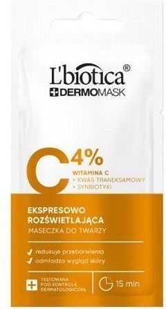 L'biotica Dermomask ekspresowo rozświetlająca maska z witaminą C 8 ml Zastosowanie tej maski to doskonały sposób na regenerację skóry pozbawionej blasku oraz redukcję przebarwień, pozostawiając skórę promienną i zdrowo wyglądającą. Maseczka Rozjaśniająca z Witaminą C: Odbudowująca Skórę L'biotica …