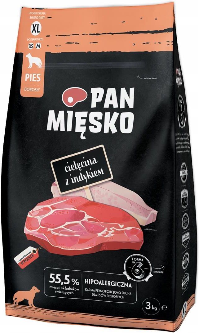 Pan Mięsko Karma Sucha Dla Dorosłych Psów Cielęcina z Indykiem Rozmiar XL 3 kg Mikstat