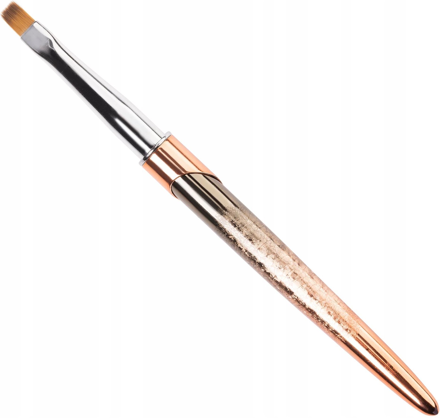 Pędzelek do żelu i akrylożelu płaski prosty Wyjątkowy, designerski pędzel do aplikacji żelu i akrylożelu. Dzięki niemu z łatwością przedłużysz, nadbudujesz paznokieć. Wykonany został z wysokogatunkowego, bardzo sprężystego włosia syntetycznego, które nie rozchodzi się na boki podczas aplikacji. Jego idealnie płaski kształt ułatwia poprawną aplikację żelu bez obawy o zalane skórki. Elastyczne włosie doskonale współpracuje z aplikowanym produktem co zapewni jego perfekcyjne rozłożenie bez smug. Idealny do przedłużania i budowania na formie i tipsie oraz nadbudowy naturalnej płytki paznokcia - także metodą 'żel bez piłowania'. Dzięki doskonałej sprężystości włosia usprawnia pracę, a jego kształt zapewnia idealne i równomierne rozłożenie żelu nawet w trudno dostępnych miejscach przy wałach bocznych. Specjalnie wyprofilowana, aluminiowa rękojeść ozdobiona tysiącami cyrkonii zapewnia nie tylko komfort pracy ale także wartość dodaną jaką są walory estetyczne. Wyjątkowy design rękojeści niespotykany nigdzie indziej zapewni Ci fantastyczne wrażenia wizualne. Migoczące cyrkonie przyciągną spojrzenia. Pędzelek posiada poręczną zatyczkę, dzięki której ochronisz swój pędzelek przed uszkodzeniami i odkształceniami. Najlepszym sposobem na zachowanie długiej żywotności Twojego pędzla ale także w profilaktyce pielęgnacji włosia kluczową rolę odgrywa odpowiednia higiena i warunki przechowywania. Pamiętaj, aby każdorazowo po skończonej pracy wyczyścić włosie w topie lub bazie hybrydowej a następnie dokładnie wytrzeć nadmiar pozostały na pędzlu w wacik bezpyłowy. Nigdy nie rezygnuj z zatyczek! Włosie: nylonowe, bardzo dobrej jakości Długość włosia: 8 mm Szerokość włosia: 6 mm