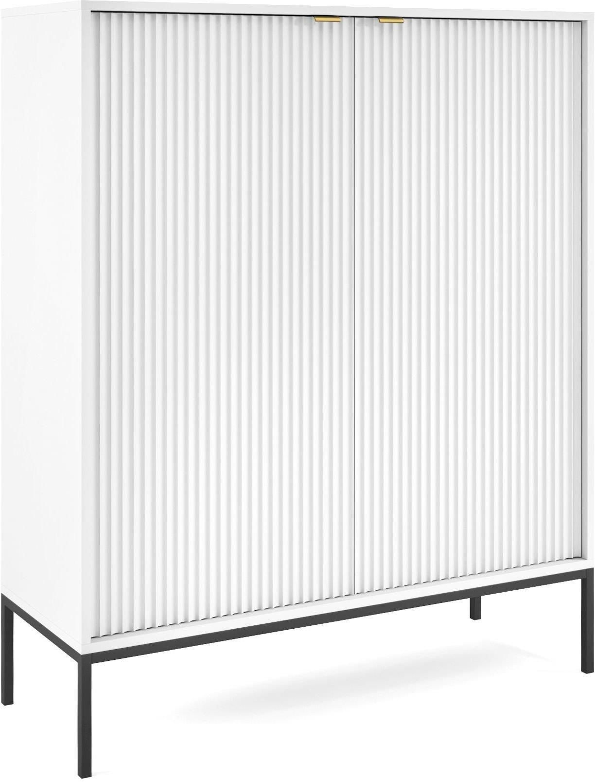 Komoda Nova biała (K104) marki Piaski to elegancki i funkcjonalny mebel, które doskonale sprawdzą się zarówno w sypialni, jak i w salonie. Jej główna cecha to bogactwo możliwości aranżacyjnych dzięki dwóm dostępnym kolorom stelaża: złotemu lub czarnemu. Kolor stelaża wybierają Państwo w trakcie dokonywania zakupu. Front komody wykonany jest z ryflowanej płyty MDF o grubości 18 mm, co dodaje jej elegancji i stylu. Obrzeża frontu również są wzmocnione tworzywem ABS, a aluminiowy uchwyt nadaje jej nowoczesnego wyglądu. Nogi komody opierają się na stalowych stelażach, które zostały pomalowane proszkowo, co zapewnia im trwałość i stabilność.Zaprojektowana z myślą o praktycznym użytkowaniu, komoda posiada 4 drzwi oraz 8 półek, co zapewnia mnóstwo miejsca na przechowywanie różnorodnych przedmiotów, od ubrań po książki czy dekoracje.Wykonana z płyty laminowanej o grubości 16 mm, z obrzeżami wzmocnionymi tworzywem ABS, gwarantuje trwałość i odporność na uszkodzenia.Pochodząca z polskiej produkcji, komoda Nova reprezentuje nowoczesny styl jak i loftowy, który doskonale wpisuje się w różnorodne aranżacje wnętrz. Jej minimalistyczna forma i wyjątkowe wykończenie sprawiają, że jest nie tylko praktycznym, ale także estetycznym dodatkiem do każdego pomieszczenia. Wymiary: Zapraszamy do zakładek Produkty z rodziny oraz Produkty podobne.Model objęty jest 2-letnią gwarancją producenta.Produkt dostarczymy do Państwa BEZPŁATNIE pod wskazany adres na terenie całego kraju.Mebel wymaga krótkiego montażu, zgodnie z załączoną instrukcją.Co WAŻNE: zgodnie z prawem i naszymregulaminemmają Państwo pełne prawo do zwrotu nieużywanych towarów, jeśli nie spełnią one Państwa oczekiwań.