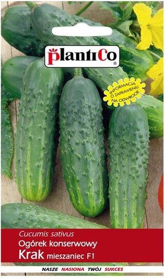 Nasiona warzyw marki PlantiCo. Ogórek gruntowy Krak mieszaniec F1. Odmiana wyhodowana w KHiNO Polan. Odmiana średniowczesna, plenna, szybko wchodzi w okres owocowania. Owoce cylindryczne, długości 6,5-8,5 cm. Skórka zielona z jaśniejszymi smugami i średniej wielkości białokolcowymi brodawkami. Odmiana polecana do konserwowania, nadająca się również do kwaszenia. Odporna na parcha dyniowatych. Gatunek wymaga gleb żyznych, zasobnych w próchnicę, w pierwszym roku po oborniku.