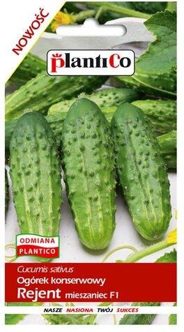 Ogórek gruntowy Rejent F1, odmiana własna PlantiCo. Odmiana średniowczesna, z przewagą kwiatów żeńskich, bardzo plenna. Owoce smukłe, nie wykazujące tendencji do przyrastania na grubość. Skórka zielona z jasnymi smugami, sięgającymi do 3/4 długości owocu. Brodawka bardzo wydatna, dość liczna, z białym kolcem. Odmiana o bardzo dobrej zdrowotności. Wysiew nasion wprost do gruntu od połowy maja do połowy czerwca. Polecana do konserwowania oraz kwaszenia.