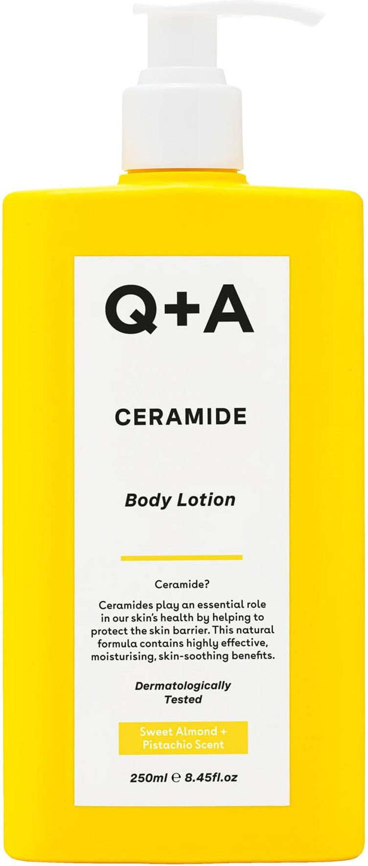 Q+A Ceramide Balsam do Ciała 250ml Balsam do ciała z ceramidami o lekkiej konsystencji, która szybko się wchłania, pozostawiając skórę jedwabiście gładką, jednocześnie głęboko ją nawilżając i odżywiając. Charakteryzuje się wyjątkowym, owocowym zapachem. Sprawdzi się w przypadku każdego rodzaju skóry. Pojemność: 250ml Seria: Ceramide