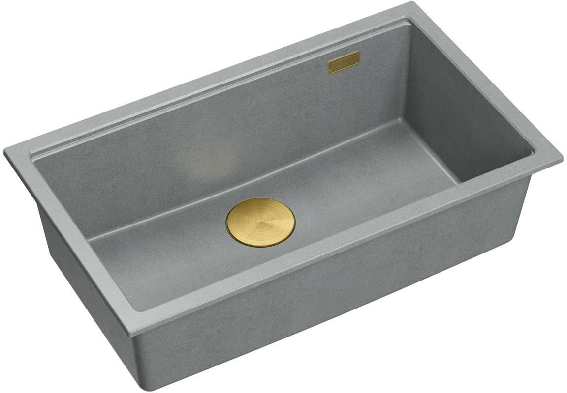 Quadron Kuchenny Zlewozmywak Jednokomorowy LOGAN 110 Granitowy Wpuszczany Wymiary: 76 x 45 cm Kolor: Szary / Silver Stone + Złoto PVD Zestaw wyposażony jest w: zlewozmywak granitowy 76 x 45 cm syfon z przyściennym systemem SAVE SPACE, dzięki któremu zaoszczędzisz dużo miejsca w szafce pod …