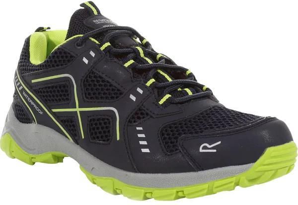 Męskie buty trekkingowe firmy REGATTA kod produktu: VENDEAVOUR RMF785 kolor: 9TD NAVY/LIME PNCH Wodoodporne i wygodne – trekkingowe męskie buty są idealne na przygodę na świeżym powietrzu. Dzięki oddychającemu materiałowi stopy pozostają świeże podczas długich wędrówek. Wycinana wkładka EVA zapewnią komfort przez cały dzień. Męskie buty do chodzenia z uszczelnionymi szwami z tkaniny Isotex ochronią przed deszczem i zachlapaniem. Buty wykończone kątownikami dla lepszej przyczepności. Sprawdzą się zarówno w górskim terenie, na leśnych ścieżkach jak i w codziennym użytkowaniu. PARAMETRY TECHNICZNE: Cholewka: materiał syntetyczny i techniczna siateczka wyprofilowana, wygodna wkładka EVA uszczelnione szwy z oddychającą wewnętrzną wyściółką membranową podeszwa zewnętrzna TPR wzmacniane noski język zszyty z cholewką Technologia Isotex: Wodoodporna, oddychająca i wiatroodporna technologia membranowa Nowa podeszwa zewnętrzna TPR z samooczyszczającymi się i ustawionymi pod kątem występami do napędzania, hamowania i zmniejszania zatykania
