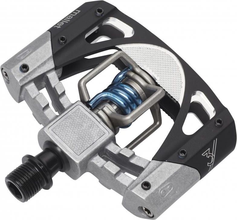 PEDAŁY ROWEROWE CRANK BROTHERS MALLET 3 RAW Dzięki połączeniu poliwęglanu i aluminium udało się uzyskać bardzo wytrzymałą i lekką obudowę. Specyfikacja Lekka i bardzo wytrzymała dwuczęściowa obudowa Wymienne piny Waga: 435 g (para) Dwuczęściowa platforma wykonana z aluminium i poliwęglanu Zacisk stalowy tłoczony Sprężyna ze stali nierdzewnej (300 series) Oś odkuwana na zimno ze stali cro-mo (scm 435) Igiełkowe łożysko wewnętrzne, maszynowe łożysko zewnętrzne Bloki premium Maksymalna waga ridera: bez ograniczeń Kąt wypięcia: 15 – 20 stopni