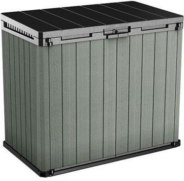 Rozszerz przestrzeń do przechowywania w ogrodzie, na tarasie lub w altanie. Zewnętrzny ogrodowy box Keter SIO Darwin o pojemności 1 150 l zapewni Ci wystarczająco dużo miejsca na narzędzia ogrodowe, poduszki, koce, sprzęt sportowy i inne akcesoria. Skrzynię otworzysz za pomocą górnej pokrywy lub dwuskrzydłowych drzwi z przodu, co umożliwia łatwy dostęp do przechowywanych rzeczy. Główne zalety Duża przestrzeń do przechowywania – 1 150 l Wysokiej jakości materiał Evotech+ Odporność na warunki atmosferyczne Miejsce na 2 kosze na śmieci (2x 240 l) Możliwość zamknięcia na kłódkę Uchwyty na półki do rozszerzenia przestrzeni Wbudowana wentylacja Możliwość montażu półek i przechowywania koszy na śmieci W razie potrzeby możesz zamontować w boxie półki (nie są dołączone do zestawu). Możesz także użyć drewnianej deski i zamocować ją za pomocą uchwytów, które znajdują się w zestawie. Box pomieści dwa kosze na śmieci o pojemności 240 l każdy. Aby ułatwić ich użytkowanie, możesz przymocować łańcuszki z haczykami, które połączą pokrywy koszy ze skrzynią, co pozwoli na łatwe otwieranie i zamykanie. Wysokiej jakości i wyjątkowo odporny materiał Evotech+ Skrzynia ogrodowa jest wykonana z materiału Evotech+, który odporny jest na warunki atmosferyczne. Ponadto jest bardzo łatwa w utrzymaniu – wystarczy przetrzeć ją wilgotną ściereczką i gorącą wodą. Materiał nie łuszczy się, nie gnije i nie rdzewieje. Praktyczny box do każdego ogrodu Znajdź idealne miejsce na skrzynię w swoim ogrodzie. Dzięki strukturze, która imituję drewno, idealnie komponuje się z otoczeniem. Dodatkowo możesz zabezpieczyć przechowywane przedmioty, zamykając box na kłódkę (nie jest dołączona do zestawu). Box jest także wyposażony w wbudowaną wentylację, co chroni jego zawartość przed wilgocią. Specyfikacja Marka: Keter Model: SIO Darwin Przeznaczenie: ogrodowy box do przechowywania Kolor: zielony Waga: 32 kg Waga opakowania: 36 kg Wymiary: 135 x 118 x 81 cm Wymiary opakowania: 144 x 84 x 19,5 cm Zawartość zestawu 1x ogrodowy box do przechowywania 1x zestaw uchwytów