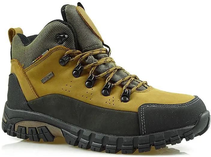 Jasnobrązowe trekkingowe skórzane buty polskiej marki American Club z najnowszej kolekcji. Obuwie posiada system TRIPLETEX oraz WATERPROOF czyli ochrona przed wiatrem, wodą i zimnem oraz absorbowanie wilgoci (pot) i odprowadzanie jej na zewnątrz przy równoczesnym blokowaniu wilgoci z zewnątrz (deszcz, śnieg) do wnętrza buta. Specjalnie wyprofilowana, ergonomiczna, gumowa podeszwa z wysokiej jakości tworzywa zapewnia dobrą przyczepność na śliskiej powierzchni. Buty wykonane ze skóry nubukowej z najwyższą dbałością o szczegóły i estetykę. Wnętrze buta wykonane ze specjalnego materiału, które pomaga utrzymać stałą temperaturę we wnętrzu buta. NUMERACJA ZANIŻONA, NALEŻY WYBRAĆ NUMER WIĘKSZY OD TEGO JAKI NOSIMY.
