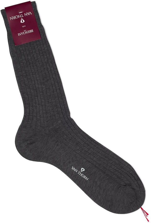 Skarpety męskie 100% bawełny to idealny wybór do szafy każdego mężczyzny. Naturalny materiał najwyższej jakości przepuszcza powietrze, jest higroskopijny i hipoalergiczny. Bawełniane skarpetki szare ribs mają elegancki prążek i wyróżnia je niezwykły komfort noszenia nawet przez wiele godzin. Dzięki długości skarpety do połowy łydki, nie musisz się martwić, że podczas siedzenia uniesiona lekko nogawka spodni odsłoni gołą skórę nogi, co nie jest dobrze widziane w oficjalnych okolicznościach. Bawełniane skarpetki możesz nosić cały rok, ponieważ w lecie dają odpowiednią wentylację stopy, a w chłodniejsze dni przyjemnie ogrzeją stopę. Bawełna jest także niezwykle delikatna i nie powoduje podrażnień. Cienkie bawełniane skarpetki męskie szare, posłużą wiele lat, ponieważ są niezwykle wytrzymałe. Eleganckie skarpetki bawełniane możesz założyć do oficjalnej stylizacji. Bawełniane skarpetki szare ribs dla wymagającego mężczyzny Bawełniane skarpetki szare ribs są niezwykle cienkie i eleganckie. Warto w dobrze przemyślanej szafie męskiej, posiadać kilka par najwyższej jakości skarpet w 100% bawełnianych. Skarpety zostały uszyte we Włoszech, z zachowaniem dbałości o najmniejszy detal. Skarpety VAN THORN idealnie trzymają się na nodze i jednocześnie są bezuciskowe. Jeśli cenisz sobie niezwykłą wygodę i klasyczną elegancję to bawełniane skarpetki szare ribs będą trafionym wyborem. Można także eleganckie skarpety szare podarować w praktycznym prezencie dla bliskiego Tobie mężczyzny. Skarpety bawełniane cienkie idealnie nadają się do eleganckich butów na oficjalne i półoficjalne okazje. Eleganckie skarpety na wyjątkowe okazje Bawełniane skarpetki szare ribs to zdecydowanie skarpety na wyjątkowe formalne okazje. Skarpetki szare w 100% z bawełny są lekko prześwitujące. Można powiedzieć, że są to skarpety niezwykle wytworne idealne na biznesowe spotkanie na wysokim szczeblu, wesele, wernisaż czy galę. Wielu mężczyzn w ostatniej dobie decyduje się na eleganckie klasyczne, bawełniane skarpetki do połowy łydki także w mniej formalnych casualowych okolicznościach. Nie należy ubierać męskich skarpet ze wzorami i kolorowych na oficjalne okazje ponieważ jest to nietaktem modowym. Bawełniane skarpetki szare ribs Modny mężczyzna powinien zachować klasyczny umiar w eleganckich stylizacjach. Skład: 100% bawełna Kraj produkcji: Włochy