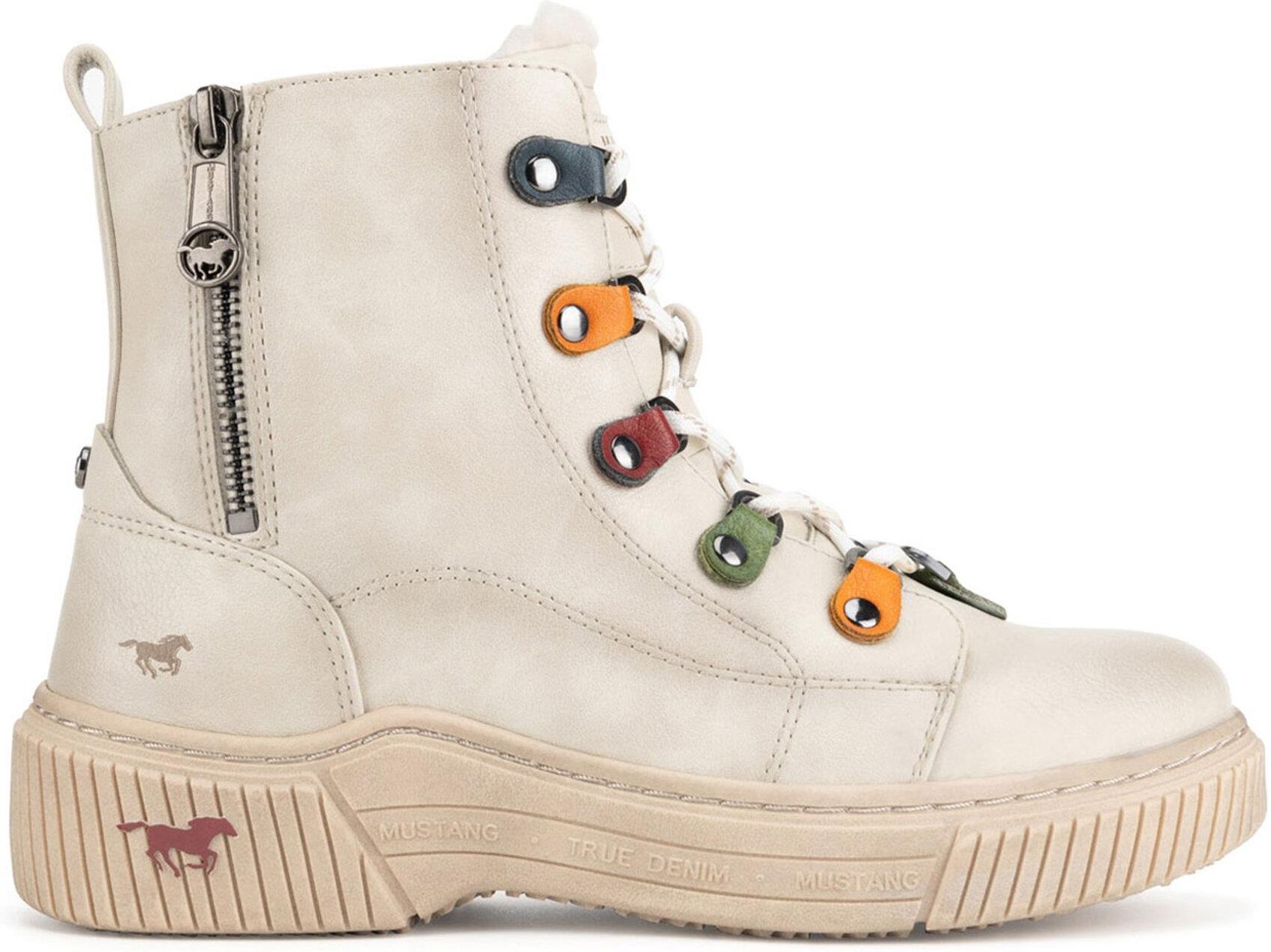 Wzbogać swoją zimową garderobę o stylowe trzewiki kultowej marki Mustang! Te białe buty z wysokogatunkowego tworzywa syntetycznego to połączenie elegancji i funkcjonalności. Dzięki ociepleniu wnętrza, zapewnią komfort termiczny nawet w najchłodniejsze dni. Zapięcie na suwak sprawia, że ich zakładanie i zdejmowanie jest szybkie i wygodne. Idealne na codzienne wyjścia, te trzewiki doskonale komponują się z różnymi stylizacjami, dodając im charakteru. Wybierz trzewiki Mustang i ciesz się modnym wyglądem oraz komfortem przez cały sezon! Cholewki rodem z amerykańskich westernów oraz wszechobecny jeans? Od razu wiadomo, że mowa o marce Mustang, dla której inspiracją w projektowaniu obuwia jest Dziki Zachód. Tego unikalnego, westernowego designu, widocznego w każdym modelu, nie da się pomylić z żadną inną marką. Buty Mustang to przede wszystkim wielkomiejski szyk, wygoda i wolność w wyrażaniu swojej osobowości. W ofercie znajdziesz między innymi sneakersy, trzewiki, trampki i półbuty - utrzymane w modnym, casualowym stylu, zaprojektowane z myślą o komforcie i wykonane z materiałów wysokiej jakości, dzięki czemu z łatwością można je połączyć z każdą stylizacją na co dzień. Wybierz model dla siebie!