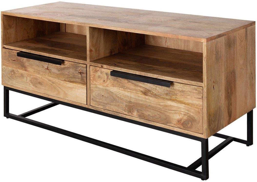 Nowoczesna szafka RTV z drewna mango. Szafka RTV w stylu loft to połączenie nowoczesnego designu z naturalnym pięknem drewna mango. Industrialny charakter mebla podkreśla solidna metalowa konstrukcja oraz uchwyty. Naturalna barwa frontów i blatu nadają szafce niepowtarzalnego, nowoczesnego wyglądu. Ten elegancki mebel to idealny elementem wyposażenia wnętrza w stylu loft, modern czy industrialnym. Dwie pojemne szuflady z metalowymi uchwytami to doskonałe miejsce do przechowywania. Nadaj Twojemu wnętrzu w stylu loft indywidualny wyraz i sprawdź inne meble serii Orm. Wymiary: szer. 120 cm, gł. 40 cm, wys. 62 cm. Materiał: drewno mango / metal. Kolor: naturalny / czarny. Półka pod telewizor o nowoczesnym kształcie wykonana z drewna mango. Półka pod telewizor w stylu loft łączy nowoczesny design z naturalnym pięknem drewna mango. Industrialny charakter mebla podkreśla solidna metalowa konstrukcja oraz uchwyty. Naturalny kolor frontów i blatu nadają szafce niepowtarzalny, nowoczesny wygląd. Ten elegancki mebel doskonale sprawdzi się w każdym wnętrzu urządzonym w stylu loftowym, nowoczesnym lub industrialnym. Dwie pojemne szuflady z metalowymi uchwytami zapewniają doskonałą przestrzeń do przechowywania. Spersonalizuj swoje wnętrze w stylu loft i zapoznaj się z innymi meblami z serii Orm. Wymiary: szerokość: 120 cm, głębokość: 40 cm, wysokość: 62 cmMateriał: drewno mango / metalKolor: naturalny / czarny. Oferujemy ponad 70 000 artykułów do aranżacji wnętrz. Obejmują one wysokiej jakości meble, wykwintne akcesoria domowe i tekstylia domowe. Zainspiruj się naszymi pomysłami na wystrój wnętrz. W ramach specjalnej usługi oferujemy bezpłatne porady dotyczące projektowania wnętrz, które pomogą Ci stworzyć idealne, stylowe wnętrze Twojego domu. Zainspiruj się naszymi pomysłami na wyposażenie wnętrz, przejrzyj naszi . Jest to całkowicie niewiążące i bezpłatne.
