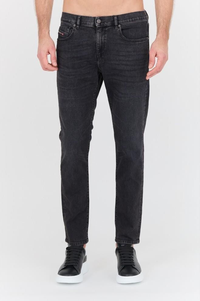 Czarne męskie jeansy D-STRUKT SLIM JEANS, marki Diesel.Wymiary modela: wzrost: 190 cm, klatka: 107 cm, pas: 93 cm.Model ma na sobie produkt w rozmiarze: 33.Wymiary produktu w rozmiarze 33: Szerokość w pasie: 44 cm, długość nogawki od zewnątrz: 103,5 cm, długość nogawki od wewnątrz: 79 cm.