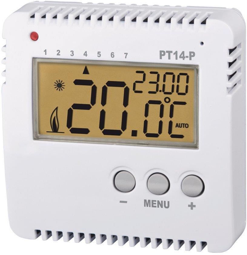 PROGRAMOWALNY TERMOSTAT PT14-P PT14-P PROGRAMOWALNY TERMOSTAT PRZEWODOWY Z PROSTYM STEROWANIEM I PODŚWIETLANYM EKRANEM Przeznaczony do: • elektrycznych grzejników • paneli grzewczych • ogrzewania elektrycznego • paneli na podczerwień Programowalny termostat PT14-P PROGRAMOWALNY TERMOSTAT PRZEWODOWY …