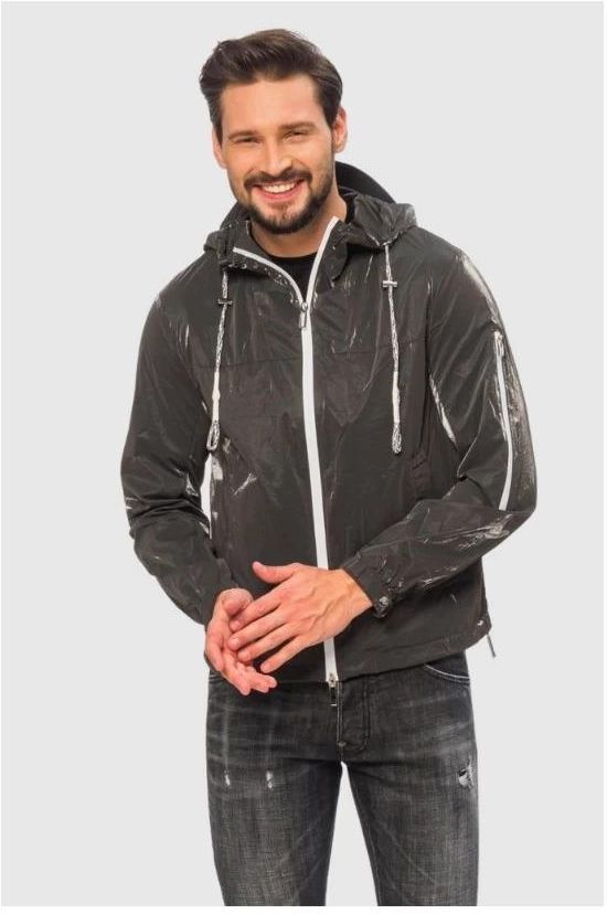 EMPORIO ARMANI Szara kurtka z tkaniny technicznej extra shiny glass, Rozmiar 46 Milanówek