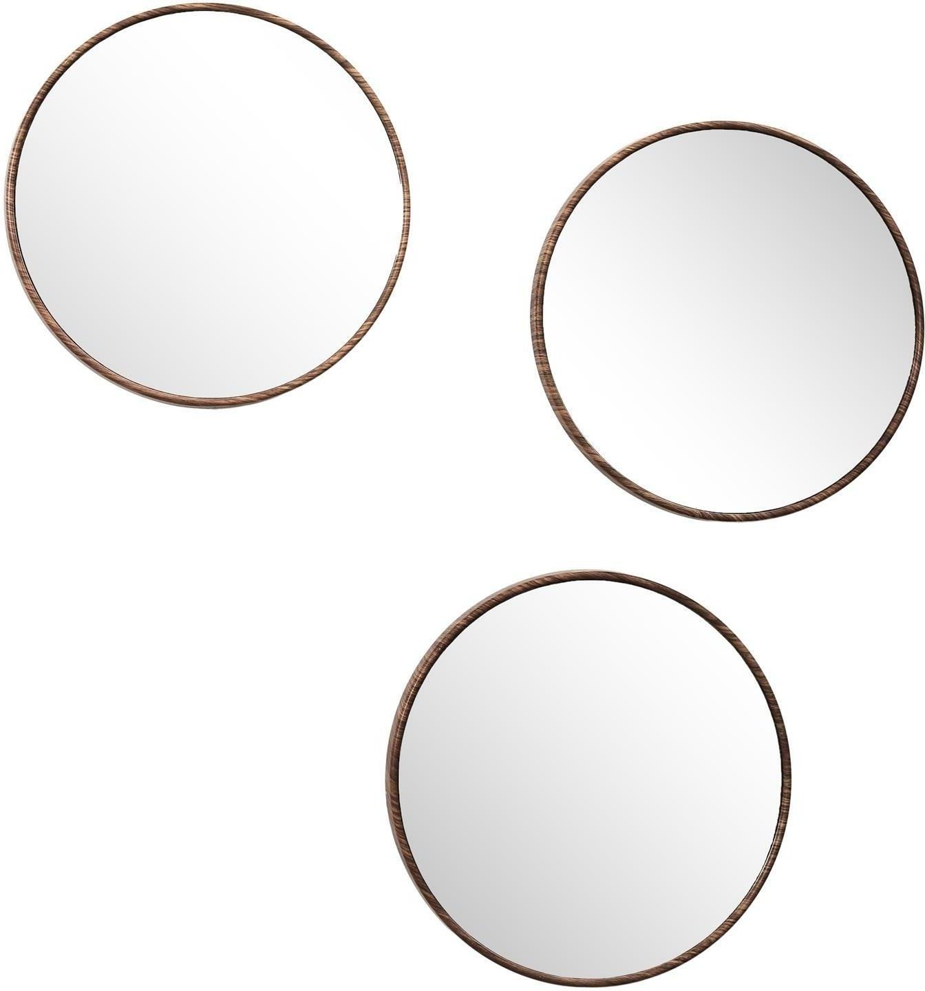 Zestaw 3 luster Toronto, okrągłych, orzech 26cm – eleganckie uzupełnienie wnętrza Prezentowany zestaw składa się z trzech okrągłych luster o średnicy 26 cm. Każde z nich zostało umieszczone w efektownej ramie, która imituje ciemne drewno orzecha. Lustra mogą być wiszące, co sprawia, że idealnie …
