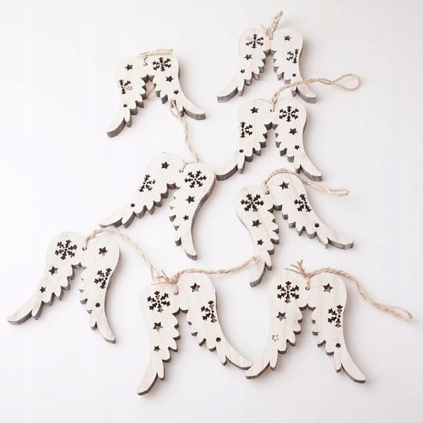 Kpl 8szt drewniane skrzydła zawieszki na choinkę Milanówek
