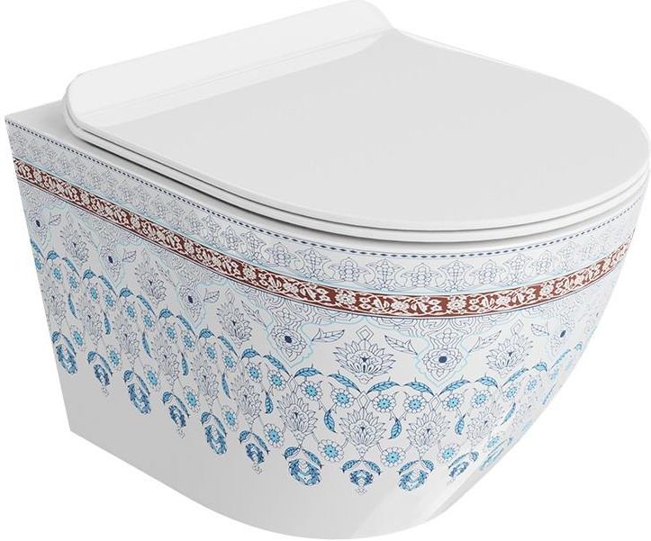 LAVITA SOFI SLIM FOLKLOR MISKA WISZĄCA WC RIMLESS + DESKA WOLNOOPADAJĄCA Skład Zestawu 1 x Lavita Sofi Slim Folklor Miska Wisząca WC 1 x Lavita Sofi Slim Folklor Deska Wolnoopadająca Elegancki styl miski WC SOFI SLIM FOLKLOR SOFI SLIM BLACK FOLKLOR to zaokrąglona bryła, wyróżniająca się deską slim z uniesionym zakończeniem oraz fantazyjną miską WC o strukturze przeplatających się kolorowych wzorów. Model idealnie sprawdzi się w eleganckich, paryskich oraz eklektycznych aranżacjach, tworząc niepowtarzalny efekt estetyczny. Miska wisząca SOFI SLIM FOLKLOR posiada standardowy rozmiar, więc możesz zrealizować szykowny projekt łazienki w każdym wnętrzu, niezależnie od jego wielkości. Funkcjonalność miski wiszącej SOFI SLIM FOLKLOR SOFI SLIM FOLKLOR to miska WC wykonana z najwyższej jakości materiałów. Do produkcji wolnoopadającej deski użyto trwałego duroplastu, a metalowe zawiasy posiadają funkcję łatwego wypięcia. Konstrukcja miski wiszącej powstała z wypalanej w odpowiedniej temperaturze porcelany, która jest odporna na powstawanie zarysowań i ubytków. Bezkołnierzowy system RIM+ otwarty wspomaga wydajne usuwanie zanieczyszczeń i chroni przed osadzaniem się bakterii. Produkt objęty jest 15- letnią gwarancją, jako potwierdzenie jego niezawodności. Opis Wymiary W Mm (Dł X Szer X Wys): 490x365x395 Bezrantowość: Tak Materiał Deski: Duroplast Materiał Zawiasów: Metalowe Rozstaw Śrub Mocujących W Misce: 18 Deska Wolnoopadająca: Tak Kolor Deski: Biały Kolor Miski: Biały Wzory Materiał Miski: Ceramika Typ Misy: Podwieszana