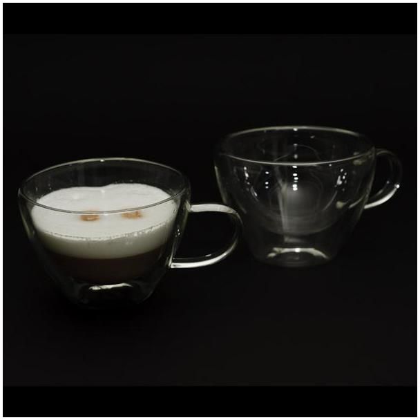 Luigi Bormioli - Filiżanki termiczne Jumbo 2 szt. - Luigi Bormioli Zestaw 2 filiżanek do kawy lub herbaty. Filiżanki wykonane są ze szkła dmuchanego ręcznie - 'Thermic glass' - szkło borokrzemowe o podwyższonej odporności na wysokie temperatury. Szkło przez bardzo długi czas zachowuje pełną przeźroczystość, nie przekłamując koloru podanego napoju, jest również bardzo lekkie w porównaniu do szkła tradycyjnego. Ponadto szklanki z tego rodzaju szkła można bez obaw myć w zmywarkach, a także używać w kuchenkach mikrofalowych. Dwuścienna szklana konstrukcja oddzielona jest próżnią, co pozwala na doskonałą izolację termiczną i zapobiega kondensacji na zewnętrznej ściance - gorące napoje nie parzą w dłoń, a zimne nie powodują wilgotnej na zewnątrz szklanki. W rezultacie temperatura gorącego napoju utrzymuje się dłużej niż w przypadku innych materiałów, takich jak ceramika lub porcelana. Ten sam efekt uzyskujemy podczas serwowania zimnych napojów, pożądana temperatura jest utrzymywana przez dłuższy czas, zapobiegając efektowi spoconej szklanki. Nie bez znaczenia pozostaje również efekt wizualny serwowania napojów w tego typu szklankach lub filiżankach. Napój wygląda, jakby był zawieszony w powietrzu, co wygląda oryginalnie i nowocześnie. Wymiary: objętość całkowita 38,5 cl/385 ml wysokość 8 cm średnica 11,8 cm Główne zalety: filiżanki o podwójnych ściankach wykonywane ręcznie ze szkła borokrzemowego odporne na wysokie temperatury szkło 'nie poci się' podczas serwowania zimnych napojów utrzymują temperaturę przez dłuższy czas możliwość mycia w zmywarce oraz używania w kuchence mikrofalowej wyprodukowane we Włoszech