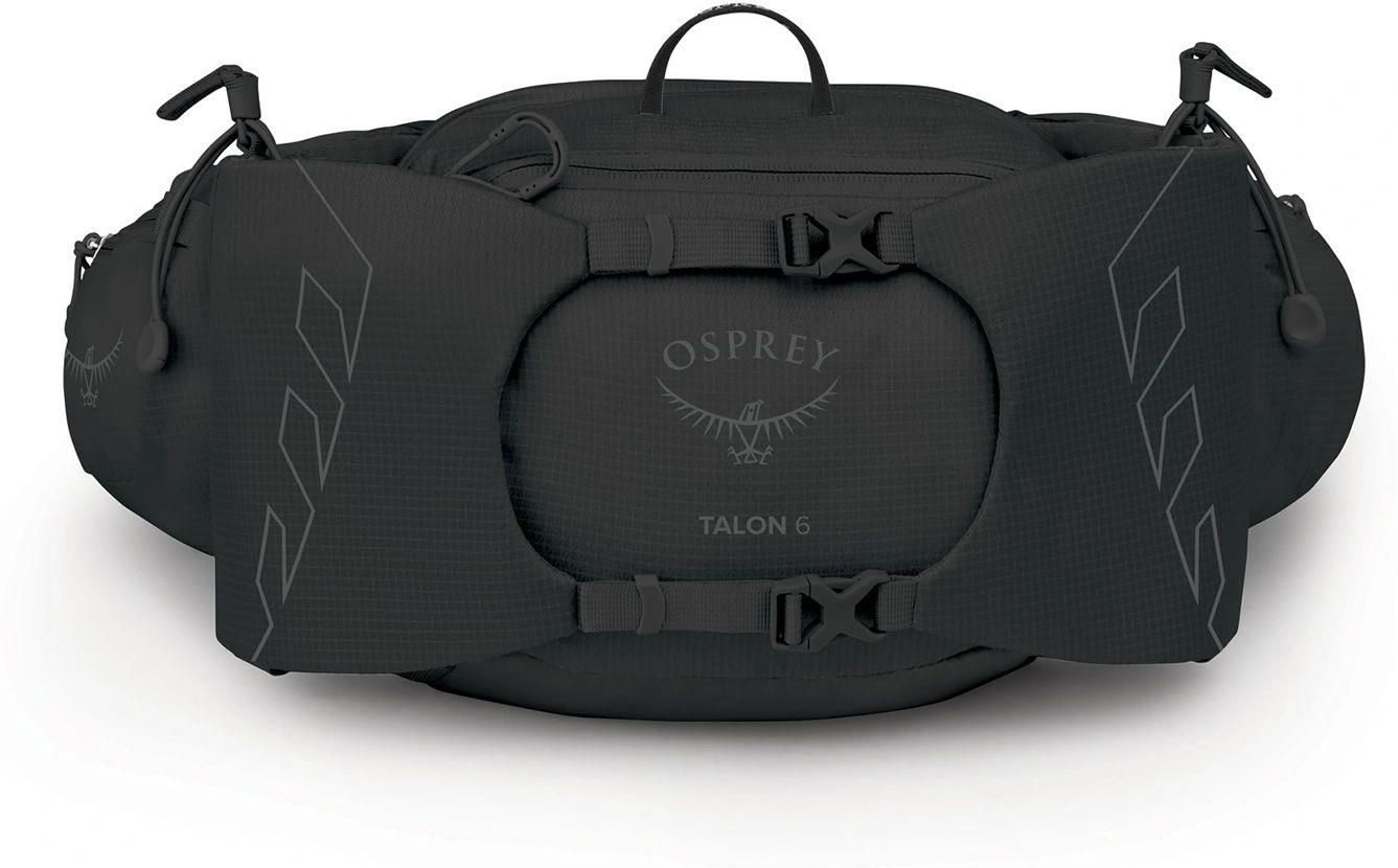 Biodrówka Osprey Talon 6 – Black Coal Grey Osprey Talon 6 to pojemna torba biodrowa należąca do popularnej serii Talon. Nerka ma pojemność 6 litrów i jest w stanie pomieścić wyposażenie niezbędne podczas krótszych wypraw. Zaprojektowana do pakowania "na lekko", sprawdzi się zarówno podczas pieszych wypadów w teren, jak i wycieczek rowerowych. Została wyprodukowana z materiałów pochodzących w 100% z recyklingu i posiada certyfikat bluesign®. Osprey Talon 6 wyposażono w pojemną komorę zabezpieczoną dwukierunkowym suwakiem. W jej wnętrzu zmieści się niezbędne wyposażenie. Dodatkowa zewnętrzna kieszeń posiada klip na klucze i jest w stanie pomieścić mniejsze akcesoria. Umieszczona od frontu biodrówki pozioma kompresja WingJacket™ zabezpiecza i stabilizuje zawartość komory głównej. Za pomocą użytkownik może przytroczyć do biodrówki lekką kurtkę lub inne akcesoria. Zabezpieczone zamkami błyskawicznymi kieszenie na pasie biodrowym przeznaczone są na podręczne akcesoria. Dwie boczne kieszenie na bidony pozwalają zabrać ze sobą odpowiednią ilość płynów. Aby zabezpieczyć spakowane bidony, biodrówka posiada elastyczne linki ze ściągaczami. Osprey Talon 6 jak inne produkty tej serii posiada panel tylny AirScape™. Podstawą systemu jest formowany wtryskowo panel tylny z HDPE, który zapewnia odpowiednie rozłożenie obciążenia, oraz umieszczone na nim poduszki z oddychającej pianki EVA poprawiające komfort i cyrkulację powietrza. Pas biodrowy wykonany w systemie BioStretch w znaczny sposób poprawia komfort, nie krępuje ruchów i umożliwia użytkownikowi dynamiczne przemieszczanie w wymagającym terenie. Osprey Talon 6 – Black Coal Grey – najważniejsze cechy: Płeć: Męski System nośny AirScape™ Pojemna komora główna Zewnętrzna kieszeń z klipem na klucze Dwie kieszenie na suwak na pasie biodrowym Dwie boczne kieszenie na bidony Regulowany pas biodrowy BioStretch Kompresja WingJacket™ Osprey Talon 6 – Black Coal Grey – dane techniczne: Materiał: 100D high–tenacity nylon/dobby check ripstop/70D nylon/420D nylon/z DWR bez PFAS Wymiary: 34 x 21 x 20 cm Pojemność: 6 l Waga: 430 g