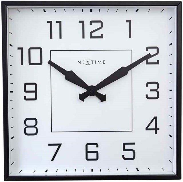 NeXtime's Be Square to cichy zegar ścienny z czarną metalową obudową. Ten zegar w kształcie kwadratowym został zaprojektowany tak, aby wyglądał prosto i odważnie; czarno-biały i z dużymi arabskimi cyframi. Jest łatwa do czytania czasu i dla tych, którzy preferują bardziej ostre kształty.