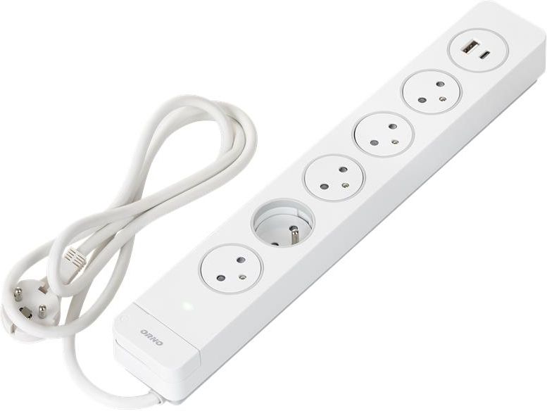 LISTWA ZASLAJĄCA Z SYSTEMEM EasyEject 5x 230V + 2x USB 3.0 A I C MODEL:ORNO OR-AE-13234/W/1,5M ✅ 5 GNIAZD Z UZIEMIENIEM I WYŁĄCZNIK ON / OFF - Listwa przeciwprzepięciowa do szerokiej gamy zastosowań, umożliwia podłączenie 5 urządzeń elektrycznych o łącznym poborze mocy 3680W. ✅ SYSTEM EasyEject - Ułatwia odłączanie wtyczki i sprawia, że użytkowanie sprzętu elektrycznego jest bezpieczniejsze. Wystarczy nacisnąć wtyczkę w dół, a urządzenie samo odepnie ją z zasilania, bez potrzeby pociągania ze strony użytkownika (po naciśnięciu wtyczka zostanie automatycznie wysunięta). ✅ 2x ŁADOWARKA USB QUICK CHARGE 3.0 / USB A + USB C - Posiada wejście szybkiego ładowania USB oraz USB C. Po podłączeniu odpowiedniego kabla USB umożliwia ładowanie większości telefonów, tabletów i urządzeń mobilnych. Napięcie wyjściowe ładowarki USB: 5V / 3A ✅ ZABEZPIECZENIE PRZECIWPRZEPIĘCIOWE - Urządzenie skutecznie zabezpiecza podłączony sprzęt przed skokami napięcia spowodowanymi warunkami atmosferycznymi lub awariami sieci. ✅ WYGODNA PŁASKA WTYCZKA Z UCHWYTEM - Listwa posiada płaską wtyczkę wyposażoną dodatkowo w uchwyt, dzięki któremu w łatwy i bezpieczny sposób wyjmiesz ją z gniazda. Można ją podłączyć do gniazda sieciowego za meblami i uniknąć tworzenia szerokiej szczeliny między ścianą, a meblem. ✅ PRZWÓD O DŁUGOŚCI 1,5m - Kabel wykonany z PVC ma długość 1,5m. ✅ PASUJE DO KAŻDEGO WNĘTRZA - Biały kolor listwy zasilającej sprawia, że listwa pasuje do większości wnętrz zarówno domowych jak i biurowych. ▶️ GŁÓWNE ZALETY LISTWY ZASILAJĄCEJ: ✅ 5 GNIAZD ZASILAJĄCYH Z SYSTEMEM EasyEject ✅ PODŚWIETLANY WŁĄCZNIK GŁÓWNY ✅ PŁASKA WTYCZKA Z WYSUWANYM UCHWYTEM / PRZEWÓD O DŁUGOŚCI 1,5m ✅ 2 PORTY USB SZYBKIEGO ŁADOWANIA QUICK CHARGE 3.0: USB + USB C ▶️ SYSTEM EasyEject Dzięki systemowi EasyEject wtyczkę można łatwo wyciągnąć (po naciśnięciu wtyczka zostaje automatycznie wysunięta). Dodatkowo system ten pozwala na utrzymanie porządku nieużywanych gniazd, zapobiega osadzaniu się w nich kurzu. 1: PODŁĄCZENIE – wciśnij wyczkę do jednego z gniazd. 2: ODŁĄCZENIE – naciśnij wtyczkę w dół, aż usłyszysz „Click”. 3: WYSUNIĘCIE – wtyczka zostanie automatycznie wysunięta. ▶️ PARAMETRY TECHNICZNE: Standard gniazd: french (typ E) Stopień ochrony (IP): 20 Typ gniazda: 2P+Z Prąd: 16A Max. obciążenie: 3680 W Kolor: biały Napięcie zasilania: 230V~, 50Hz Ilość przewodów: 3 Ilość gniazd sieciowych: 5 Przesłony torów prądowych: tak Typ izolacji: PVC Typ ochronnika przeciwprzepięciowego: Typ 3 Liczba złączy USB: 2 Ładowarka USB: tak Rodzaj przewodu: H05VV-F Napięcie wyjściowe ładowarki USB: 5VDC/3,4A max. 17W Przekrój poprzeczny przewodu: 1,5 mm² Z ochroną przeciwprzepięciową: tak Długość przewodu zasilającego: 1.5 m Typ złączy USB: 1xUSB-A, 1x USB-C USB Quick Charge: QC 3.0 EasyEject: tak Parametry QuickCharge: 5VDC/3A max.15W 9VDC/2A max 18W 12VDC/1.5A max. 18W Uoc ochronnika: 6kV (L-N, L/NPE) Up ochronnika: 2kV(L-N,L/N-PE) Energia absorpcji ochronnika: 375 J Uc ochronnika: 255V~ ▶️ ZESTAW ZAWIERA: Oryginalnie zapakowana listwa zasilająca Instrukcja obsługi w języku polskim Karta gwarancyjna