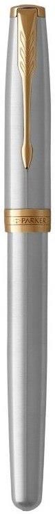 Pióro kulkowe Parker Sonnet Stalowy GT Parker Sonnet to kwintesencja kunsztu marki Parker, to symbol ponadczasowej elegancji. Szeroki wybór precyzyjnie wykonanych detali i wyrafinowanych wzorów, takich jak kultowa „ciselé”, stworzonych, by pisanie stało się wyjątkowym doświadczeniem. Korpus i nasadka ze szlifowanej stali nierdzewnej. Potrójny pierścień wykonany z mosiądzu pokrytego złotem. Klip wykonano ze stali platerowanej złotem. Made in France na łączniku sekcji. W opakowaniu prezentowym Parker premium. UWAGA: Wkład do pióra umieszczony jest pod spodem dna pudełka. Kunsztownie wykonany, z korpusem ze szczotkowanej stali szlachetnej oraz klipem i pierścieniami wykończonymi złotem.Końcówka pióra kulkowego bez wysiłku zapewnia stały, równomierny dopływ tuszu na papier dostarczając doświadczenie precyzyjnego, komfortowego pisania Szczegóły produktu Nr katalogowy: 1931506 Seria: Sonnet Original Wykończenie: GT Styl: ekstrawagancki Materiał stalówki: stal Edycja: seryjna W zestawie: Pudełko premium, produkt piśmienniczy Parker, wkład startowy W zestawie Pudełko premium, produkt piśmienniczy Parker, wkład startowy