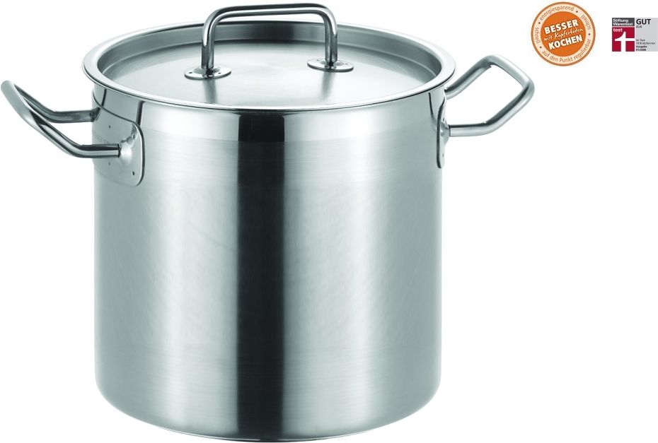 Szczegóły produktu Pojemny garnek na zupę, w którym zmieści się pyszna, domowa zupa i nakarmisz wielu gości. Wykonanie ze stali nierdzewnej zawsze przyciąga wzrok i stanowi ozdobę każdego stołu. Więcej informacji: energooszczędna, miedziana podstawa pieca Protherm® wysokiej jakości stal nierdzewna 18/10 w ciężkiej konstrukcji kadłub częściowo matowy uchwyty profesjonalne termoizolacyjne wykonane ze stali nierdzewnej 18/10 solidna pokrywa wykonana ze stali nierdzewnej 18/10 funkcjonalne skalowanie wewnętrzne jako pomoc w dozowaniu ukierunkowane nalewanie poprzez stabilizującą krawędź wylewki nadaje się do wszystkich powszechnie stosowanych typów kuchenek, w tym indukcyjnych i ceramicznych Masa netto: 2,52 kg Numer katalogowy: SU-6466-24 Numer katalogowy: 4007257583795 Zawartość: 9,00 l Średnica: 24 cm Wysokość: 20,3 cm