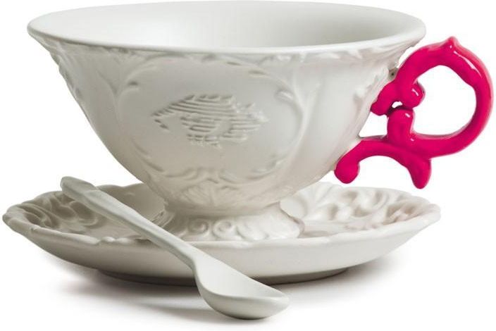 SELETTI Filiżanka ze spodkiem i łyżeczką I-tea fuksja 09858FUC Milanówek