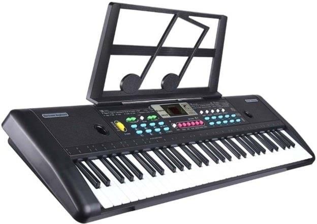 Suprimo 605 UFB Suprimo 605 UFB to wszechstronny keyboard, który łączy w sobie bogactwo brzmień oraz możliwości twórcze. Idealny zarówno dla początkujących muzyków, jak i dla tych, którzy szukają urządzenia do zabawy i nauki. Dzięki różnorodnym funkcjom oraz bogatej palecie dźwięków, ten model zyskuje popularność w różnych stylach muzycznych, od klasyki po współczesne brzmienia. Wybór odpowiedniego instrumentu ma kluczowe znaczenie dla komfortu gry i satysfakcji z tworzenia muzyki. Kluczowe cechy Oto najważniejsze cechy Suprimo 605 UFB: Liczba klawiszy: 61 klawiszy (5 oktaw), Różnorodność dźwięków: 16 instrumentów, 10 rytmów oraz 6 ścieżek demo, Funkcje edukacyjne: Tryb lekcji, nagrywanie i odtwarzanie fraz muzycznych, Opcje zasilania: Zasilanie sieciowe z dołączonego zasilacza lub na 6 baterii AA (brak w zestawie), Akcesoria: Pulpit do nut, mikrofon zakończony mini-jackiem, zasilacz sieciowy oraz instrukcja obsługi. Typ i liczba klawiszy Suprimo 605 UFB wyposażony jest w 61 klawiszy, co zapewnia rozpiętość 5 oktaw. Taki układ klawiszy czyni go idealnym wyborem dla dzieci oraz młodych muzyków, którzy stawiają swoje pierwsze kroki w świecie muzyki. Łatwość w obsłudze oraz różnorodność dźwięków pozwala na eksplorację i rozwijanie umiejętności w przyjemny sposób. Typ klawiszy Choć urządzenie nie skupia się na zaawansowanych mechanizmach klawiszowych, to jednak oferuje komfortowe warunki do gry. Klawisze są odpowiednio wyprofilowane, co pozwala na wygodne i intuicyjne granie. Dzięki temu młodzi adepci sztuki muzycznej mogą cieszyć się grą, bez zbędnego zmęczenia palców. Brzmienie i dźwięk Pomimo przystępnej ceny, Suprimo 605 UFB oferuje niezwykle bogaty zestaw barw dźwiękowych. Użytkownicy mają do dyspozycji 16 różnych instrumentów, 10 rytmów oraz 6 ścieżek demo, które urozmaicają każdą sesję muzyczną. Dodatkowo, wbudowany port USB umożliwia odtwarzanie muzyki z telefonu czy tabletu, co czyni go jeszcze bardziej atrakcyjnym. Funkcje Instrument to nie tylko keyboard, ale także narzędzie, które wspiera naukę gry. Funkcje programowania, nagrywania i odtwarzania umożliwiają młodym muzykom tworzenie własnych kompozycji i analizowanie ich później. Dodatkowo, model posiada tryb lekcji, który ułatwia przyswajanie nowych umiejętności. Warto zwrócić uwagę na możliwość współpracy z mikrofonem, co otwiera drzwi do zabaw z karaoke i zachęca dzieci do śpiewania. Zasilanie Suprimo 605 UFB oferuje różne opcje zasilania, co czyni go bardzo uniwersalnym. Może być zasilane zarówno z sieci elektrycznej, korzystając z dołączonego zasilacza, jak i na 6 baterii AA. Dzięki temu, sprzęt idealnie sprawdzi się w plenerze czy na rodzinnych spotkaniach, gdzie rozrywka i muzyka stają się główną atrakcją. Złącza i porty Instrument jest wyposażony w szereg przydatnych złącz. Użytkownicy znajdą port USB, który umożliwia podłączenie urządzeń zewnętrznych, a także wejście mikrofonowe, co pozwala na swobodne korzystanie z mikrofonu w zestawie. Dodatkowo, dostępne są wyjścia słuchawkowe, co daje możliwość samodzielnego ćwiczenia bez przeszkadzania innym. Waga i wymiary Choć konkretne wymiary nie zostały podane, instrument jest lekki i poręczny, co ułatwia transport. Jego wymiary są dostosowane do potrzeb młodych muzyków, a waga sprawia, że keyboard można zabrać ze sobą wszędzie. Te cechy czynią go idealnym rozwiązaniem dla tych, którzy chcą grać w różnych miejscach, nie rezygnując z jakości dźwięku. Akcesoria W zestawie z modelem znajduje się wszystko, co niezbędne do komfortowego użytkowania. Oprócz samego keyboardu, użytkownicy otrzymują pulpit do nut, mikrofon zakończony mini-jackiem, zasilacz sieciowy oraz instrukcję obsługi. Te akcesoria są praktyczne i ułatwiają korzystanie z instrumentu, co czyni go doskonałym wyborem na prezent.