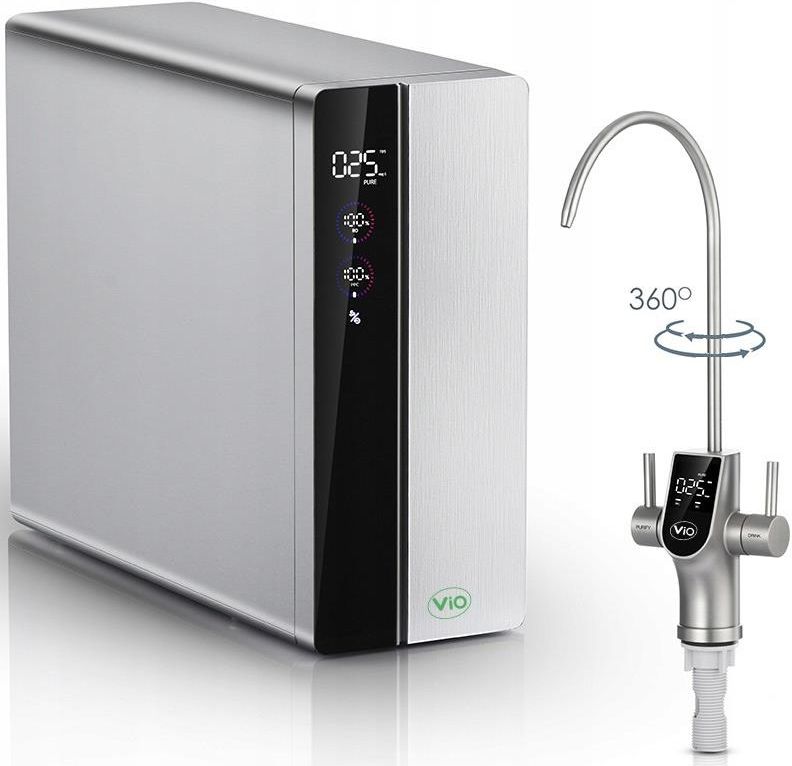 FILTR ODWRÓCONA OSMOZA ViO BP-D1200G z SMART-KRANEM FILTR ODWRÓCONA OSMOZA ViO BP-D1200G Szybkość przepływu wody – do 3 l/min Oznacza to, że nawet duża rodzina nie odczuje braku czystej wody. Woda jest dostępna natychmiast, nawet podczas intensywnego użytkowania. 4-stopniowy system filtracji Zaawansowany proces oczyszczania wody składa się z następujących etapów: Filtr PP (polipropylenowy) – zatrzymuje większe zanieczyszczenia mechaniczne, takie jak piasek, osad czy rdza. Filtr węglowy (Carbon Block) – usuwa chlor, związki organiczne i inne szkodliwe substancje wpływające na smak i zapach wody. Membrana odwróconej osmozy (1200G RO-membrana) – eliminuje do 99,9% bakterii, wirusów, metali ciężkich i innych zanieczyszczeń. Post-filtr węglowy – finalnie oczyszcza wodę, nadając jej świeży smak i klarowność. Zalety ViO BP-D1200G Maksymalna szybkość filtracji – 3 l/min Woda dostępna natychmiast, nawet przy intensywnym użytkowaniu kranu. Idealne rozwiązanie dla dużych rodzin i zastosowań komercyjnych. Inteligentne sterowanie i powiadomienia Nowoczesny wyświetlacz zapewnia wygodę użytkowania i informuje o stanie filtrów oraz jakości wody. Kompaktowość i łatwa instalacja System można łatwo zamontować pod zlewem bez konieczności skomplikowanego podłączenia. Instalacja nie wymaga specjalistycznej wiedzy. Łatwa obsługa Filtry można wymienić szybko i bez wysiłku dzięki przyciskowi szybkiego dostępu, co eliminuje potrzebę wzywania serwisanta. Świeża i smaczna woda każdego dnia Uzyskasz krystalicznie czystą wodę bez chloru, metali ciężkich, bakterii i wirusów. Poprawiony smak wody sprawi, że Twoje napoje i potrawy będą jeszcze lepsze. Inteligentne sterowanie Wyświetlacz informacyjny pokazuje kluczowe parametry pracy systemu: Poziom TDS (rozpuszczonych substancji stałych) na wejściu i wyjściu. Stan filtrów – system automatycznie informuje o konieczności ich wymiany. Status urządzenia – powiadomienia o błędach lub usterkach. Łatwa wymiana filtrów jednym przyciskiem Proces wymiany filtrów jest maksymalnie uproszczony – wystarczy nacisnąć przycisk, aby wyjąć i zamienić wkład. Nie są potrzebne żadne narzędzia ani skomplikowane czynności. Kompaktowy i nowoczesny design System bez problemu mieści się pod zlewem, nie zajmując dużo miejsca. Jego elegancki wygląd pasuje do każdej kuchni. Ekonomiczność i ekologia Korzystanie z ViO BP-D1200G pozwala ograniczyć zużycie plastikowych butelek, co redukuje ilość odpadów i pozwala zaoszczędzić pieniądze. Dane techniczne ViO BP-D1200G Typ filtracji: Odwrócona osmoza (przepływowa) Wydajność: 3 litry na minutę Liczba etapów filtracji: 4 (PP + Carbon Block + 1200G RO-membrana + post-filtr) Wskaźniki na wyświetlaczu: TDS, stan filtrów, status urządzenia Wymienne filtry: Łatwa wymiana jednym przyciskiem Kompaktowe wymiary: Idealne do montażu pod zlewem Dla kogo przeznaczony jest system ViO BP-D1200G? Rodziny z dziećmi – czysta i bezpieczna woda dla najmłodszych. Osoby dbające o zdrowie – woda bez bakterii, wirusów i chemikaliów. Uże rodziny – szybki przepływ wody (3 l/min) zapewnia stały dostęp do czystej wody. Biura i kawiarnie – stały dostęp do wody do przygotowywania kawy, herbaty i innych napojów. Dlaczego warto wybrać ViO BP-D1200G? Szybkość – 3 litry na minutę, idealne dla dużych rodzin. Oszczędność – zmniejsza koszty zakupu wody butelkowanej. Wygoda – czytelny wyświetlacz ułatwia obsługę. Bezpieczeństwo – usuwa chemikalia, bakterie, wirusy i inne zanieczyszczenia. Nowoczesny design – kompaktowa obudowa pasująca do każdej kuchni. Jak działa system odwróconej osmozy ViO BP-D1200G? Filtr PP – usuwa piasek, rdzę i większe zanieczyszczenia. Filtr węglowy (Carbon Block) – pochłania chlor, związki organiczne i inne chemikalia. Membrana osmotyczna (1200G) – eliminuje do 99,9% bakterii, wirusów i metali ciężkich. Post-filtr węglowy – finalnie oczyszcza wodę, nadając jej świeży smak. BEZ ZBIORNIKA ViO BP-D1200G to nowoczesny system filtracji, który zapewnia czystą, zdrową i smaczną wodę dla całej rodziny. Dzięki wydajności 3 l/min, 4-stopniowej filtracji i inteligentnemu wyświetlaczowi to niezastąpione urządzenie w każdej kuchni. Łatwa wymiana filtrów, kompaktowy design i oszczędność sprawiają, że ViO BP-D1200G to idealny wybór do domu i biura.