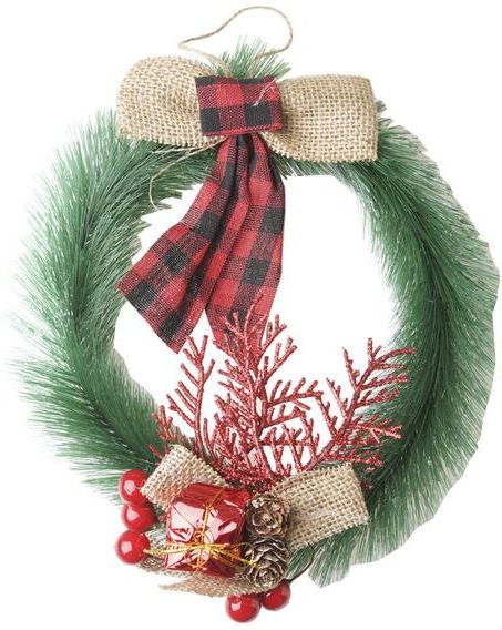 Zawieszka wianek świerk stroik z prezentem kokardą