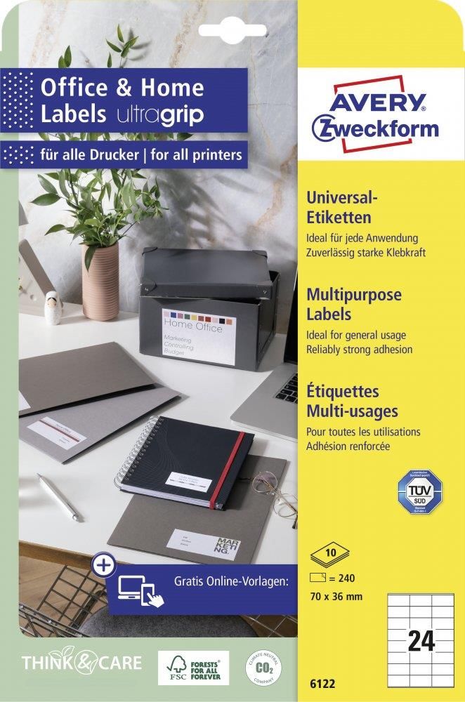 Avery Zweckform Etykiety Uniwersalne Zweckform, 70X36Mm, 10 Arkuszy, Biały Milicz