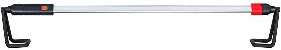 Obudowa aluminiowa o regulowanej długości. Zakończona haczykami w gumowych osłonach, które zabezpieczają lakier auta przed porysowaniem. Klosz wykonano z odpornego na uderzenia poliwęglanu. Możliwość regulacji kąta położenia w zakresie 360°. Ledowy wskaźnik poziomu naładowania. Trzy poziomy świecenia. W zestawie akumulator litowo-jonowy oraz zasilacz sieciowy. Idealna do warsztatów samochodowych, wulkanizacyjnych oraz serwisów. Dane techniczne: Źródło światła: 50 x SMD LED, 6500K Bateria: akumulator 3,7V 4800mAh Li-ion z gniazdem USB Typu C Regulacja długości: 117-197cm Moc świecenia/ czas pracy: - tryb niski:500lm/ 4godz. - tryb średni: 1000lm/ 2godz. - tryb wysoki: 2000lm/ 1godz. Czas ładowania: 4godz. Waga: 1100g z baterią