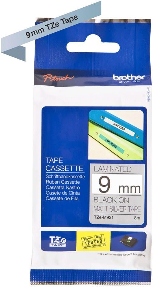 9 mm szerokości, 8 m długości Matowa laminowana etykieta redukuje odbicia światła Wysokiej jakości oryginalna taśma firmy Brother Zapewnia wyraźne i trwałe rezultaty Uniwersalna laminowana taśma TZe-M921 z czarnym nadrukiem na matowym srebrnym tle, to idealne rozwiązanie do tworzenia przyciągających wzrok etykiet. Sprawdzi się zarówno przy oznaczaniu aktywów w organizacji jak i informowaniu o testach bezpieczeństwa. Nośnik TZe-M921 stanowi idealne rozwiązanie przy znakowaniu wewnątrz, jak i na zewnątrz. Taśma jest kompatybilna z drukarkami etykiet P-touch, które posiadają logo TZ i TZe na pokrywie kasety z taśmą. Kompatybilne z Brother  PT-D200,  PT-H105, PT-H500, PT-P750W, PT-P900W, PT-P710BT, PT-D800W, PT-P950NW, PT-D200BWVP, PT-D210, PT-D210VP, PT-D400, PT-D450VP, PT-D600VP, PT-H105WB, PT-H110, PT-P300BT, PT-P910BT, PT-E110VP, PT-E300VP, PT-E550WVP, GL200VP, GL-H105, GL-H105VP, PT-1000, PT-1000L, PT-1010, PT-1090, PT-1230PC, PT-1260VP, PT-1280DT, PT1280VP, PT-1290, PT-1750, PT-18R, PT-2030VP, PT-2420PC, PT-2430PC, PT-2480, PT-2700VP, PT-2730VP,  PT-3600, PT-7100VP, PT-7500VP, PT-7600VP, PT-9500PC, PT-9600, PT-D200VP, PT-H300, PT-P700, PT-P750TDI, PT-1005, PT-1010L, PT-1080, PT-1800, PT1830, PT-1950, PT-2100, PT-2470, PT-9200DX, PT-9400, PT-H75, PTE100, PT-E100VP. Taśma TZe-M921 firmy Brother została poddana rygorystycznym testom w celu stworzenia trwałego i niezawodnego nośnika. Ta laminowana metaliczna taśma z czarnym nadrukiem na srebrnym matowym tle o szerokości 9 mm stanowi idealne rozwiązanie w przypadku znakowania zasobów organizacji. Sprawdzi się również w celu informowania o już odbytym lub koniecznym do wykonania teście bezpieczeństwa czy przeglądzie. Dzięki wodoodpornej konstrukcji, klejowi, który przykleja się do praktycznie każdej powierzchni i technologii odpornej na blaknięcie, zarówno taśma jak i tekst pozostaną nienaruszone nawet w najbardziej ekstremalnych warunkach. Matowe wykończenie laminowanej taśmy TZe-M921 gwarantuje czytelność etykiety. Wybierając taśmę TZe-M921, możesz mieć pewność, że Twoja drukarka etykiet będzie drukować sprawnie, tworząc jasne, czytelne i trwałe etykiety.