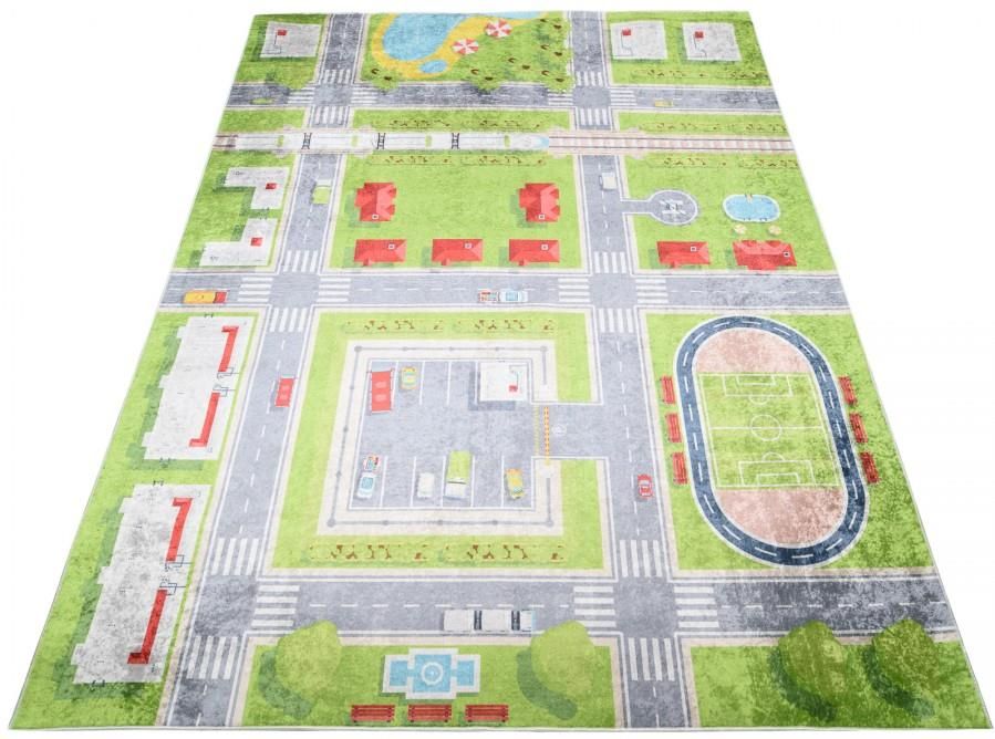 Dywan dla dziecka z kolekcji EMI to kolorowy dywan wykonany w technice druku cyfrowego. Jest wyjątkowo miękki, a przy tym łatwy do utrzymania w czystości. Doskonale nadaje się do pokojów dziecięcych – będzie wspaniałym miejscem do zabaw. Prezentowany dywan jest wykonany z przędzy poliestrowej, włókna są miłe w dotyku, a przy tym wytrzymałe i odporne na częste odkurzanie i pranie szamponami do dywanów. Zachowuje przy tym właściwości antyelektrostatyczne – nie elektryzuje się przy użytkowaniu, dobrze izoluje termicznie i akustycznie. Spód został pokryty antypoślizgową powłoką, dzięki czemu produkt z tej serii doskonale przylega do podłoża.