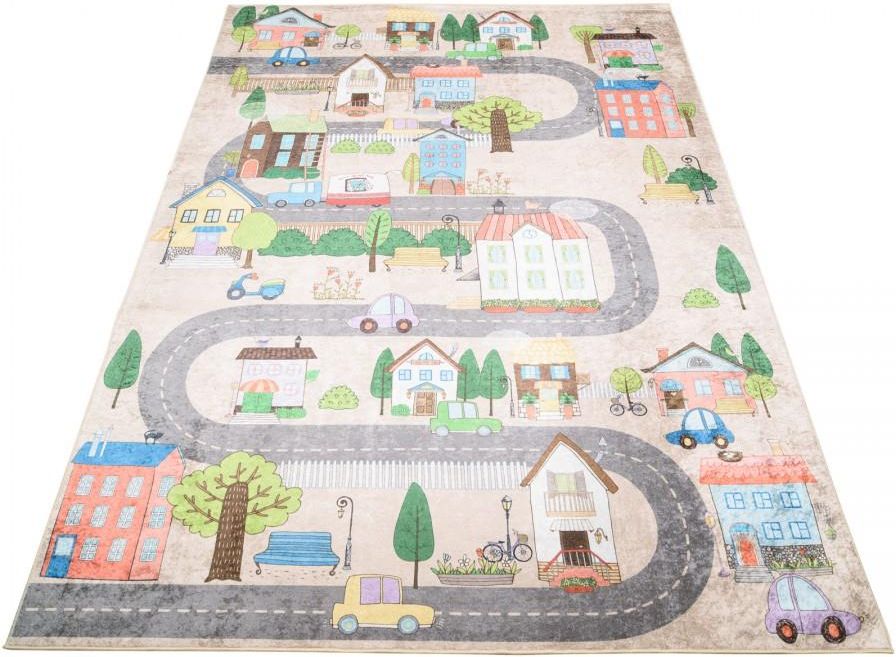 Dywan dla dziecka z kolekcji EMI to kolorowy dywan wykonany w technice druku cyfrowego. Jest wyjątkowo miękki, a przy tym łatwy do utrzymania w czystości. Doskonale nadaje się do pokojów dziecięcych – będzie wspaniałym miejscem do zabaw. Prezentowany dywan jest wykonany z przędzy poliestrowej, włókna są miłe w dotyku, a przy tym wytrzymałe i odporne na częste odkurzanie i pranie szamponami do dywanów. Zachowuje przy tym właściwości antyelektrostatyczne – nie elektryzuje się przy użytkowaniu, dobrze izoluje termicznie i akustycznie. Spód został pokryty antypoślizgową powłoką, dzięki czemu produkt z tej serii doskonale przylega do podłoża.