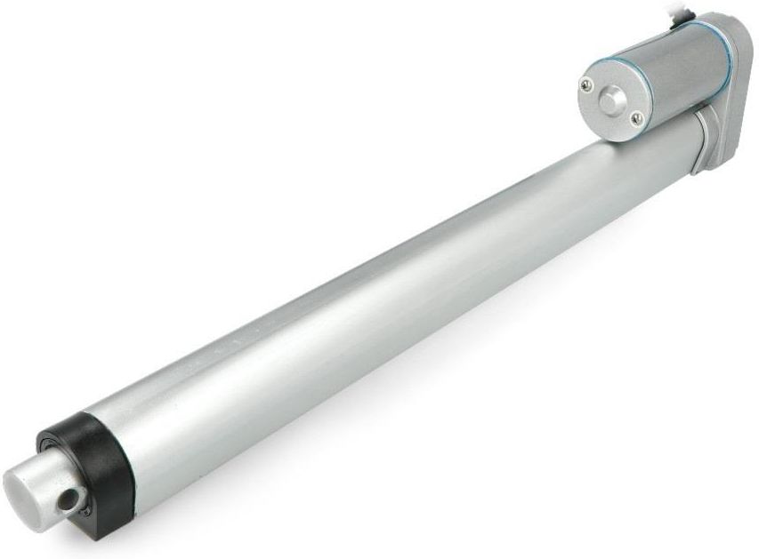 Siłownik liniowy zasilany napięciem 12 V o klasie szczelność IP65 i wysuwie 30 cm. Udźwig urządzenia wynosi 500 N (50 kg). Siłownik pracuje z prędkością 15 mm/s. Posiada zabezpieczenie przed przekroczeniem maksymalnego wysuwu w postaci przełączników krańcowych. Maksymalny pobór prądu zasilania wynosi 2 A. Siłownik posiada metalowe tylne mocowanie, które ułatwia instalację urządzenia.