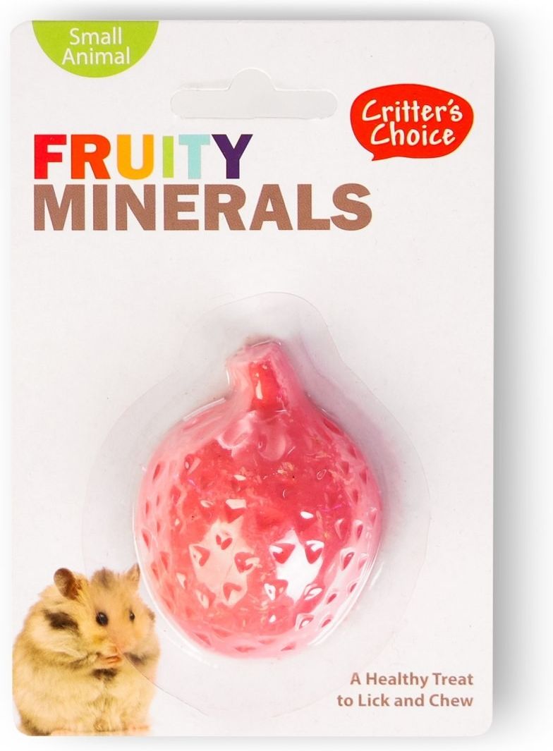 Doskonałe źródło minerałów Fruity Minerals to przysmak, który dostarcza gryzoniom ważne dla życia mikroelementy i minerały które w naturalnym środowisku dostarcza im natura. Zaspakaja naturalną potrzebę gryzienia, pielęgnuje uzębienie gryzonia oraz pomaga ścierać stale rosnące ząbki. Smakowita bogata w związki mineralne cenne dla odpowiedniego rozwoju gryzonia przekąska. Uzupełnia codzienną dietę w wapń, który jest niezbędnym składnikiem w budowie kości i zębów. Smak: truskawkowy Specjalnie dla: - świnek morskich - królików - szynszyli - myszy - chomika - szczura - oraz innych dużych i małych gryzoni Sposób podania Umocuj smakołyk wewnątrz klatki w łatwo dostępnym miejscu, aby zwierzak mógł lizać i podgryzać smakołyk.