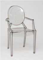 Krzesło inspirowane projektem Louis Ghost jest połączeniem dwóch sprzeczności. Nowej technologii w której używa się nowoczesnych materiałów wtryskiwanych w formę pod dużym ciśnieniem, oraz kształtów w stylu Ludwika. Uzyskujemy dzięki temu wysoką wytrzymałość oraz niebanalną formę pasującą do różnych wnętrz. Kolor: transparentny (czerwony,niebieski,szary,przezroczysty,żółty) Krzesła dostępne są również w wersji pełnego koloru (nie są transparentne) Wymiary [cm]: wysokość: 93 szerokość: 54 głębokość: 57 wysokość siedziska: 48