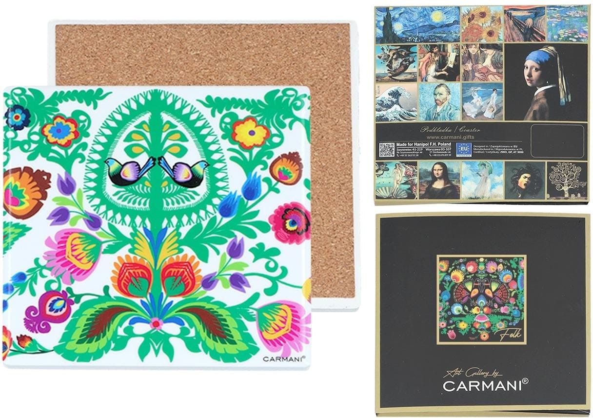 Podkładka ceramiczna doskonale chroni meble przed uszkodzeniem, a do tego nasze podkładki posiadają piękne, unikatowe dekoracje. Kolekcja: Folk Carmani Rozmiar: 10.8cm Opakowanie: biały karton Liczba sztuk w opakowaniu: 36 Podgrupa: podkładki, podstawkiPodkładki ceramiczno-korkowe Tematyka: malarstwo EAN: 5905450836788