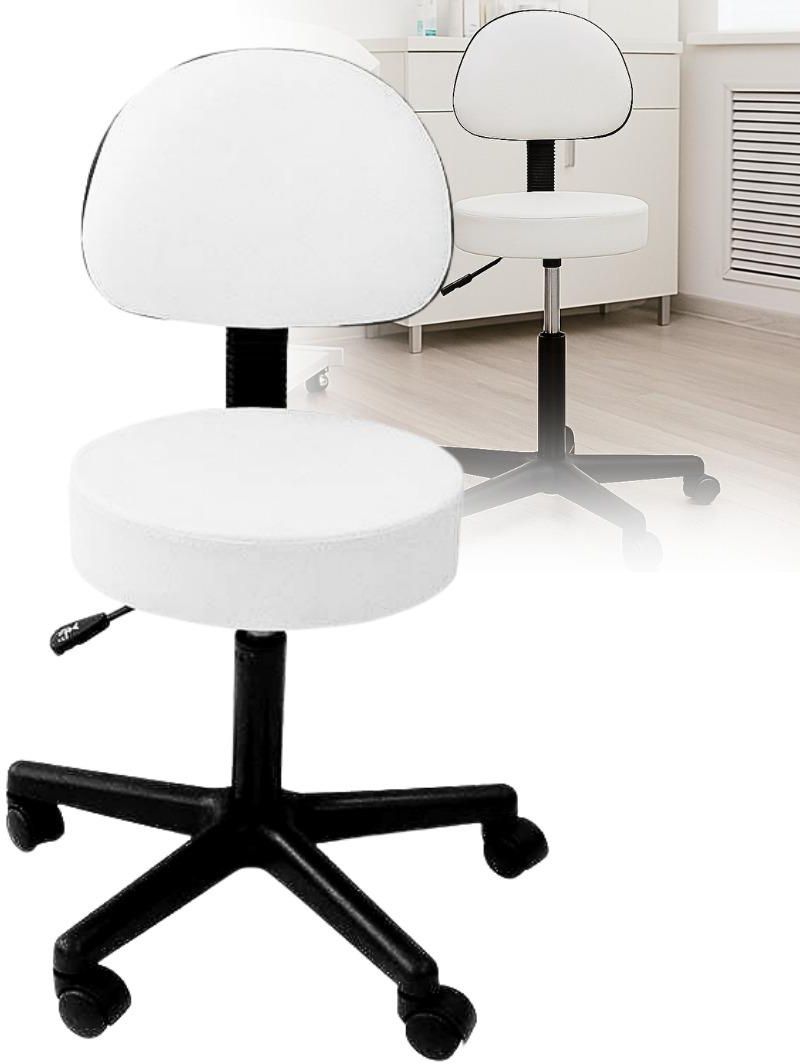 Taboret kosmetyczny BASIC z oparciem biały Milicz
