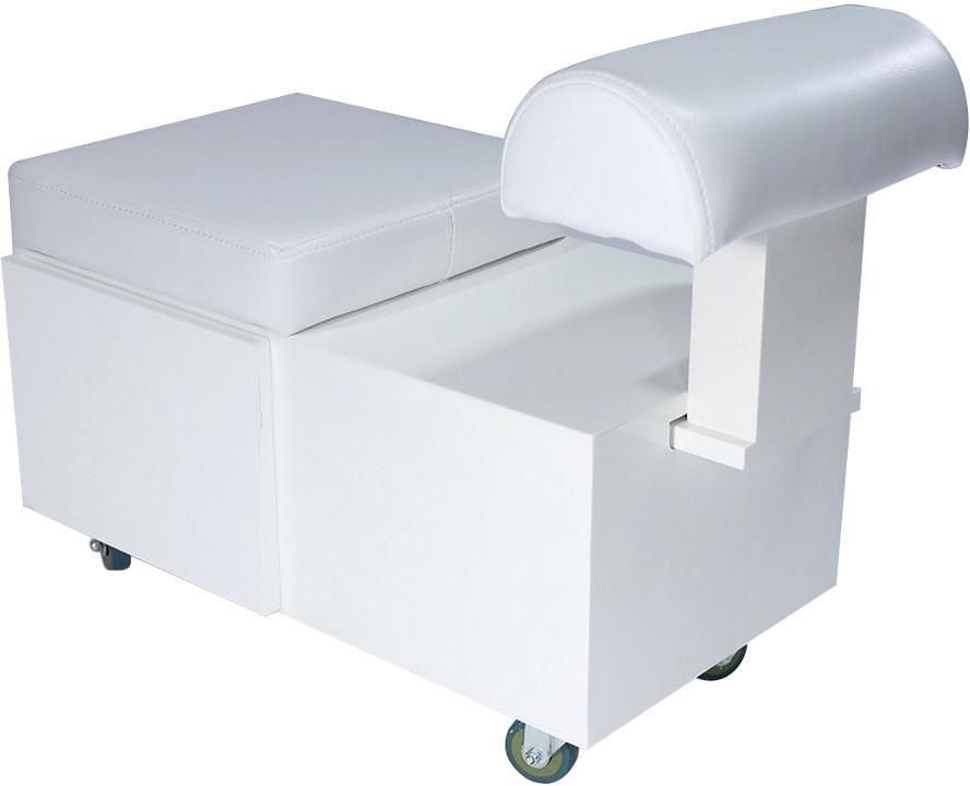 Wygodna, komfortowa pufa do zabiegów pedicure. Miękkie siedzisko oraz podnóżek wykonane z białej eko-skóry. Całość łatwe w czyszczeniu i dezynfekcji (eko-skórę można czyścić środkami niezawierającymi nafty, alkoholu, amoniaku, stosowanie środków żrących może spowodować przebarwienia i przetarcia). …