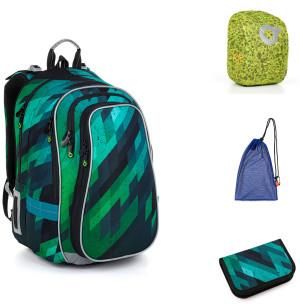 Zestaw do szko艂y sk艂adaj膮cy si臋 z plecaka, pi贸rnika, worka i pelerynki na plecak Komplet szkolny sk艂ada si臋 z produkt贸w: LYNN 23018 - Niebieskozielony plecak szkolny, PENN 23018 - Pi贸rnik szkolny z dwoma skrzyd艂ami, ZUZA 19046 - Worek na obuwie, ZIGI 17001 - Peleryna na plecak