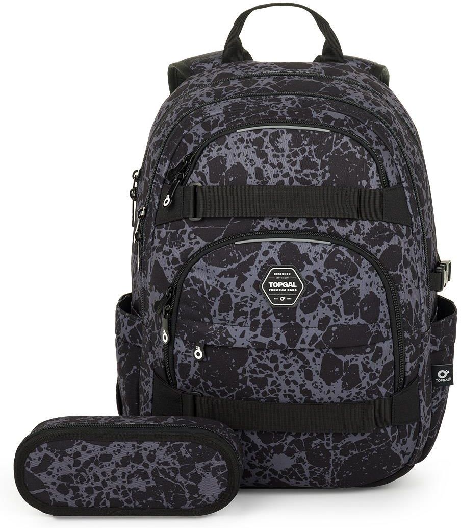 Zestaw dla młodzieży składający się z plecaka i piórnika etui. Komplet szkolny składa się z produktów: VIKI 25035 - Plecak młodzieżowy z szarym wzorem, ETUE 25035 - Piórnik szkolny