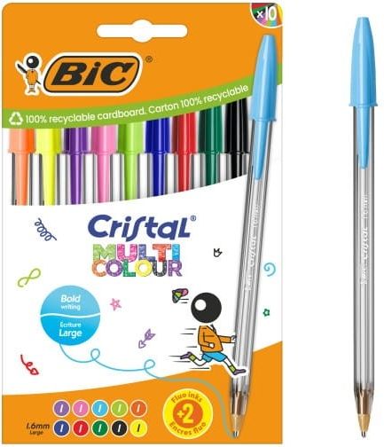 Długopis BIC Cristal Multicolour 1,6 mm - zestaw 10 kolorów Kultowy sześciokątny kształt, szeroka końcówka (1,6 mm) i 10 intensywnych kolorów sprawiają, że każda notatka staje się bardziej wyrazista i pełna energii. Niezawodna jakość marki BIC, która od 1950 roku jest symbolem prostoty, trwałości i …
