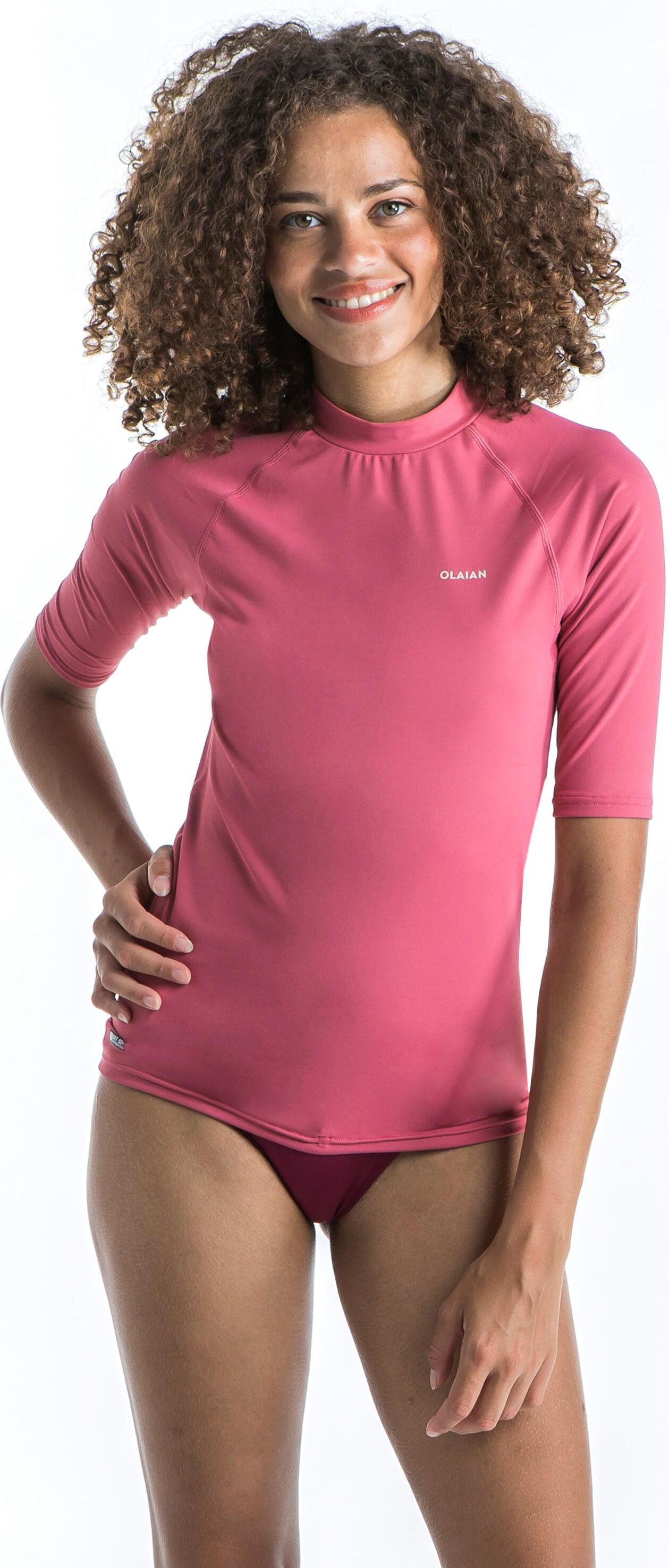 Olaian Top Anty-Uv Surfingowy Damski 100S Krótki Rękaw Różowy Miłomłyn