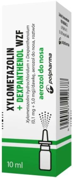 XYLOMETAZOLIN + DEXPANTHENOL WZF dla dorosłych i młodzieży w wieku powyżej 6 lat NOWOŚĆ w aerozolu do nosa !  Zapewnia kompleksową pomoc w katarze: szybko udrożnia nos zmniejsza obrzęk błony śluzowej nosa nawilża, regeneruje i ochrania błonę śluzową nosa  Xylometazolin + Dexpanthenol WZF, Skład i postać: Każdy ml roztworu zawiera 1,0 mg ksylometazoliny chlorowodorku i 50,0 mg deksopantenolu. Każda dawka aerozolu do nosa (0,1 ml roztworu) zawiera 0,1 mg ksylometazoliny chlorowodorku i 5,0 mg deksopantenolu. Substancja pomocnicza o znanym działaniu: benzalkoniowy chlorek 0,2 mg/ml. Aerozol do nosa, roztwór. Bezbarwny lub prawie bezbarwny, przezroczysty roztwór. Wskazania: Xylometazolin + Dexpanthenol WZF jest wskazany w objawowym leczeniu niedrożności nosa w przebiegu przeziębienia oraz po przebytej operacji nosa - w celu pobudzenia gojenia się błony śluzowej i poprawy drożności nosa. Xylometazolin + Dexpanthenol WZF jest wskazany do stosowania u dorosłych i dzieci w wieku od 6 lat. Podmiot odpowiedzialny: Zakłady Farmaceutyczne Polpharma S.A. ChPL: 2025.07.08. To jest lek. Dla bezpieczeństwa stosuj go zgodnie z ulotką dołączoną do opakowania i tylko wtedy, gdy jest to konieczne. W przypadku  wątpliwości skonsultuj się z lekarzem lub farmaceutą.
