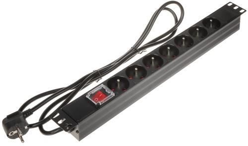 LISTWA ZASILAJĄCA PD-7/R-N 1.8 m Listwa zasilająca PD-7/R-N o wysokości 1U przeznaczona do zabudowy w szafie typu RACK. SPECYFIKACJA Napięcie znamionowe: 230 V AC / 50 Hz Całkowity maksymalny prąd: 16 A Maksymalne łączne obciążenie: 4000 W Liczba gniazd sieciowych: 7 x CEE 7/5 Montaż: W szafach typu RACK 19" Długość kabla zasilającego: 1.8 m przewód z wtykiem zasilania CEE 7/7 Typ obudowy: 1 U RACK 19" Wyłącznik: Tak (z wbudowaną kontrolką i zabezpieczony osłoną) Waga: 0.74 kg Wymiary: 480 x 45 x 51 mm Gwarancja: 2 lata